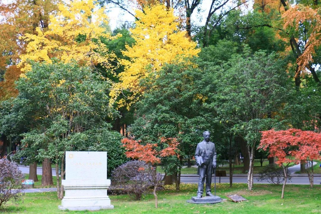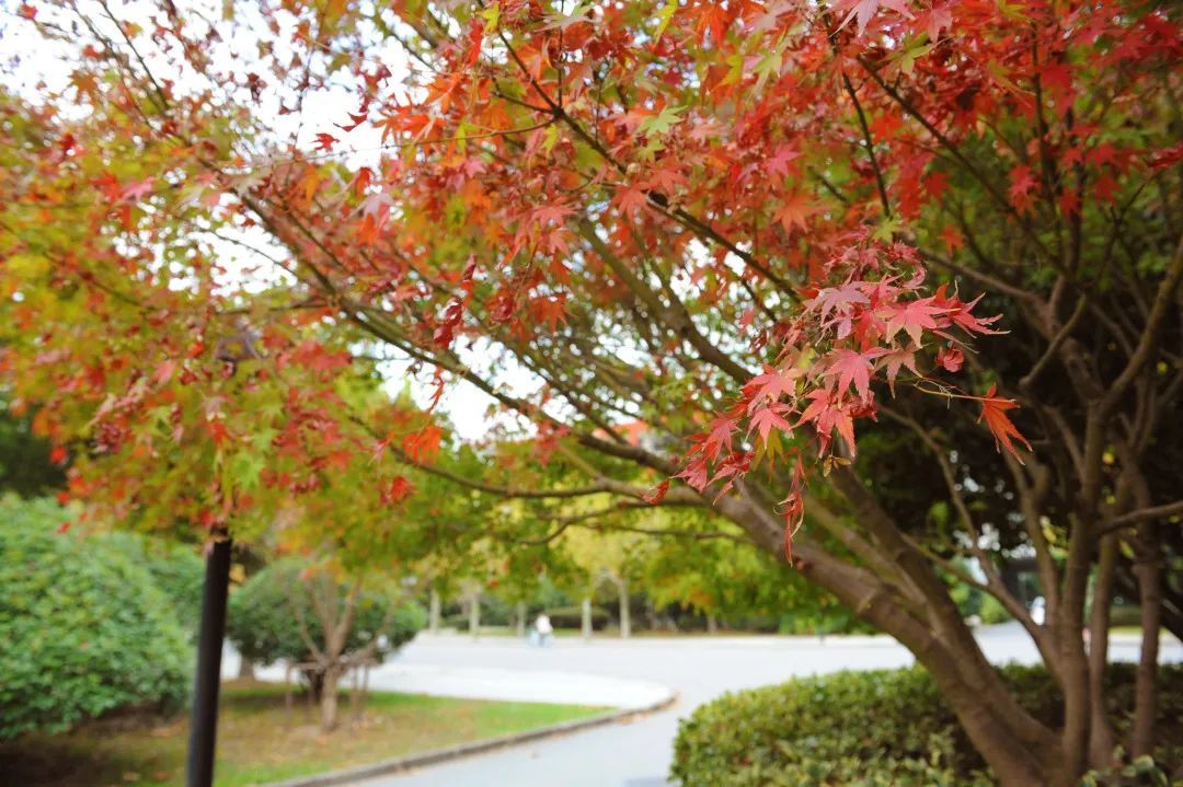 赏枫位置:奉浦校区图书馆正门前和食堂南面绿化带