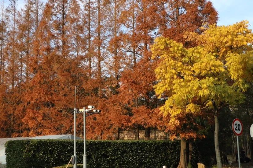 上海杉达学院赏枫位置:学校门口至学生宿舍沿途。