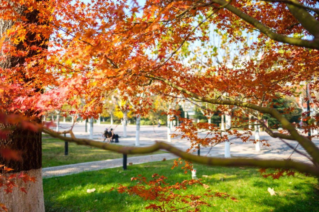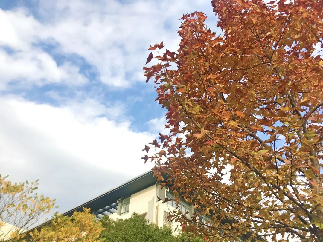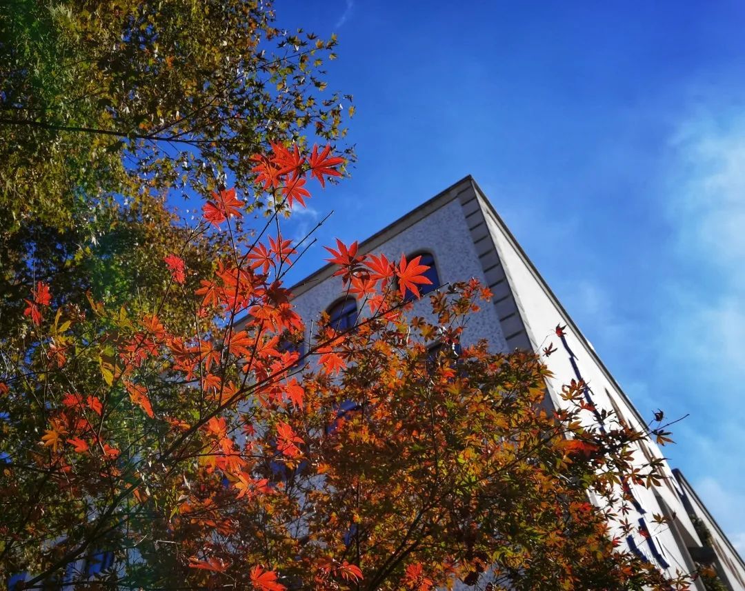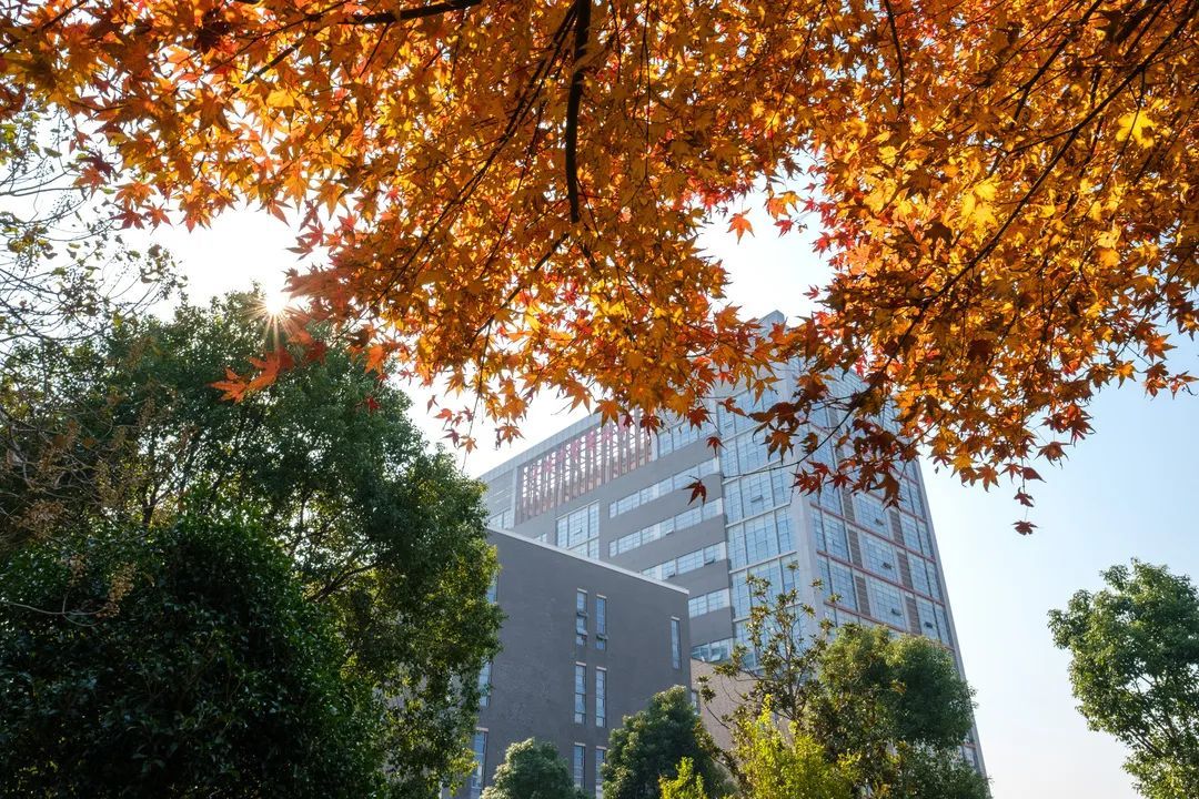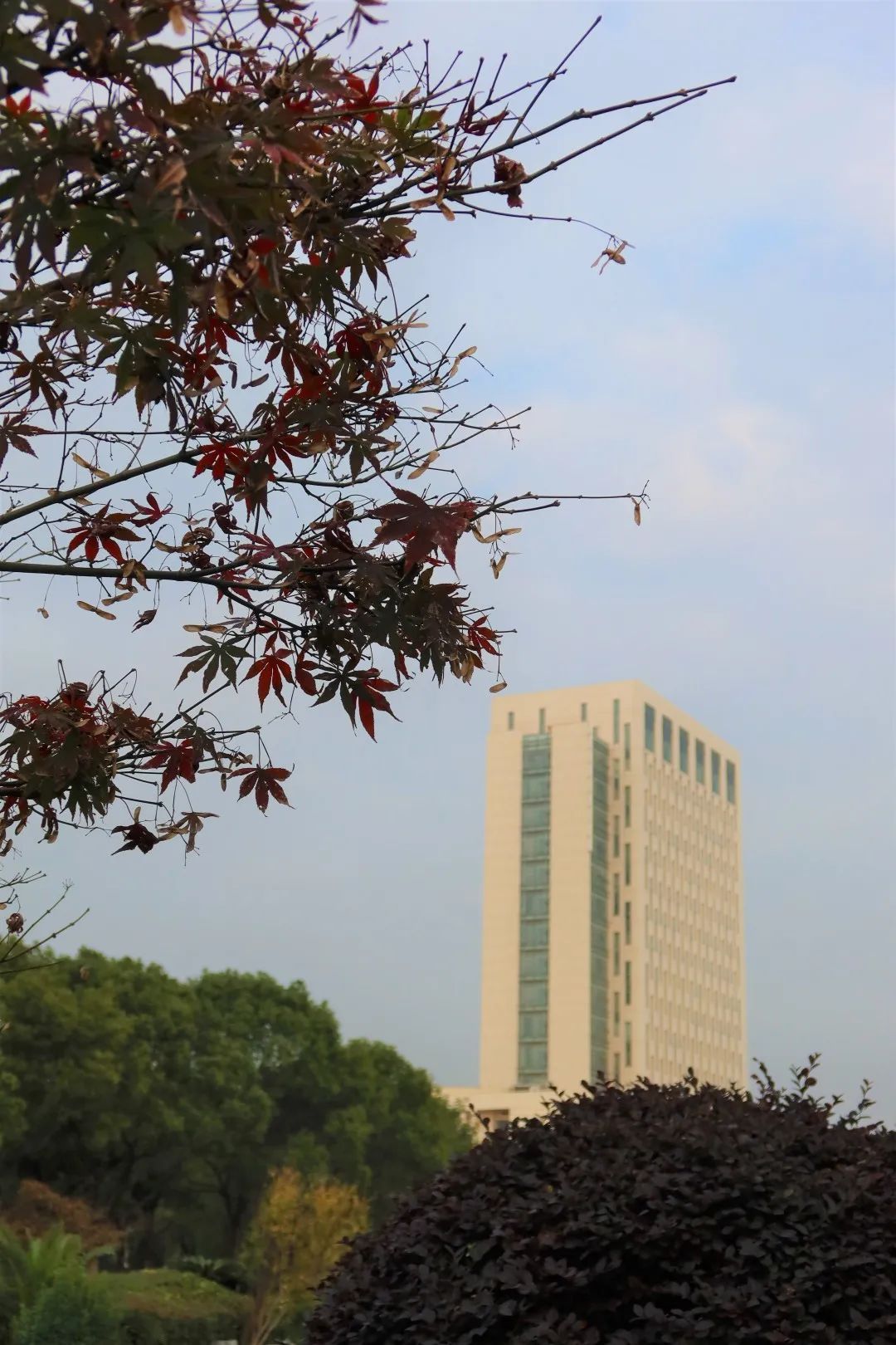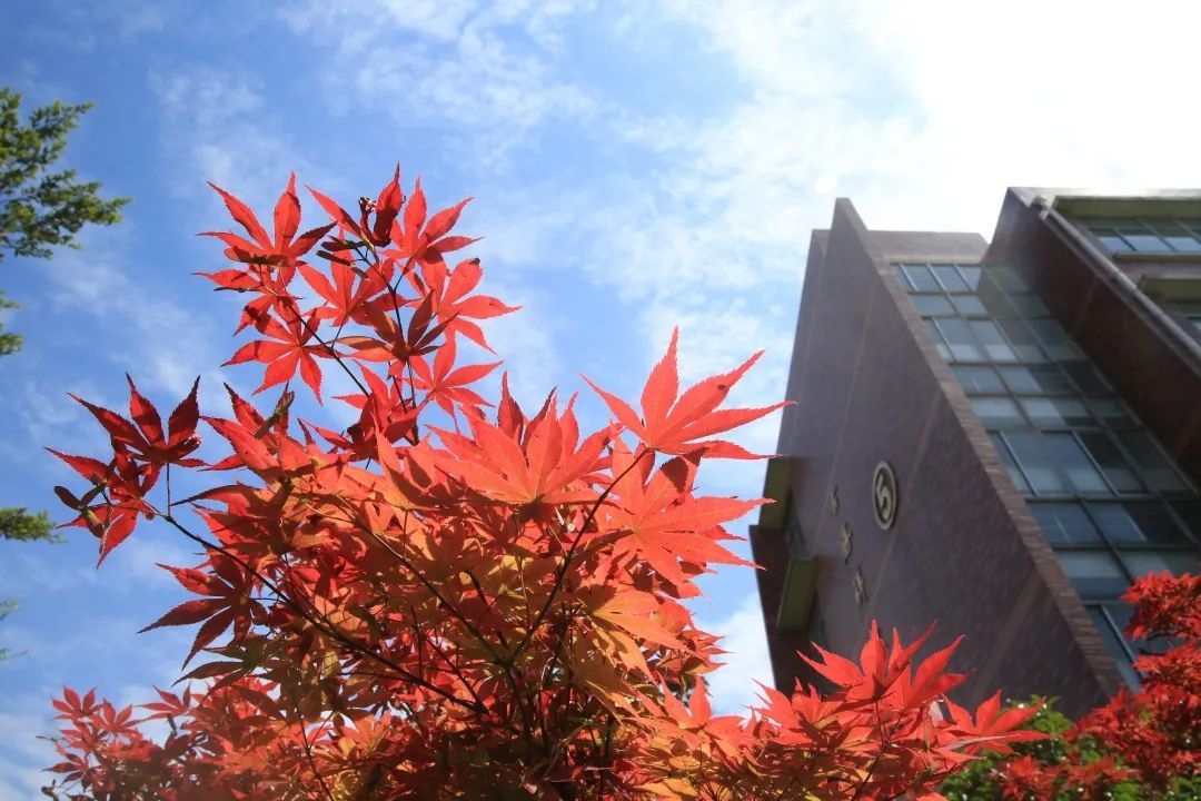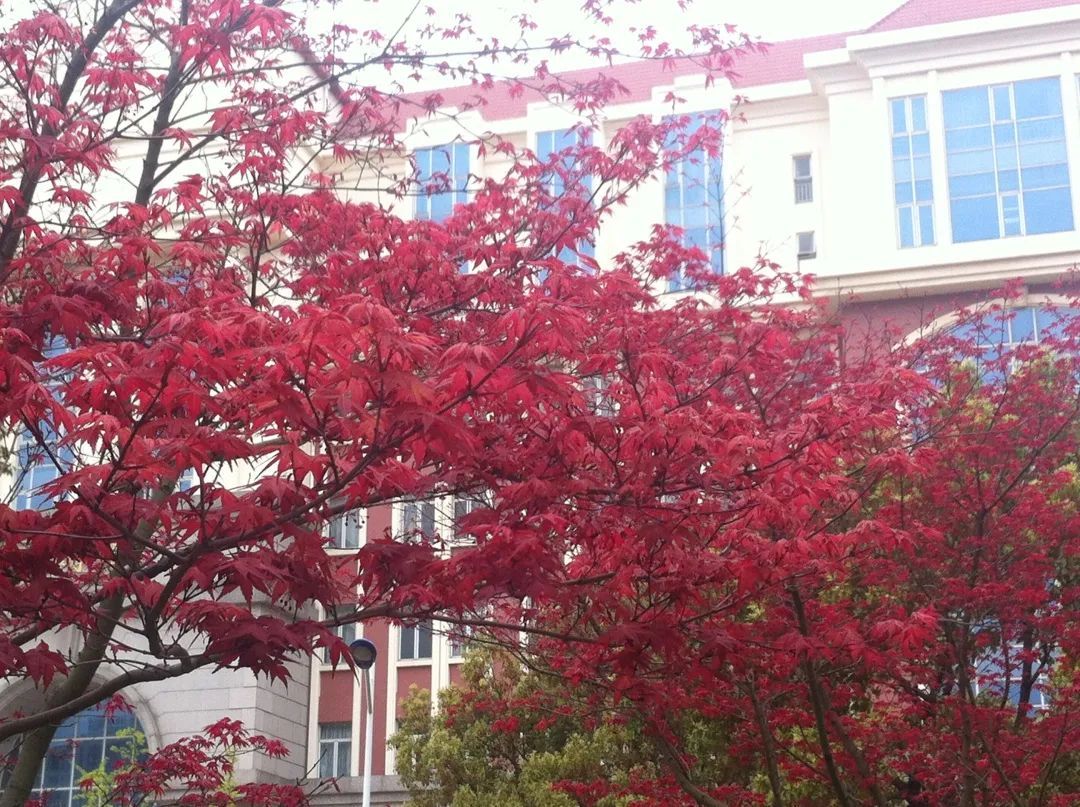 作为“上海市花园单位”,上应大徐汇校区栽有花草树木百余种。每逢秋冬,校园内点缀的枫叶,在万千苍翠中显得格外美丽温馨。仰头望一望天空,就能感受“便引诗情到碧霄”的情怀。