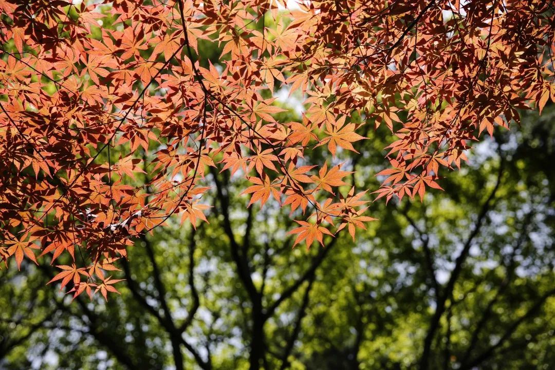上海对外经贸大学赏枫位置:图书馆西侧的小树林,挨着柚子树有7、8株枫树,等你来发现校园里隐藏的秋色。