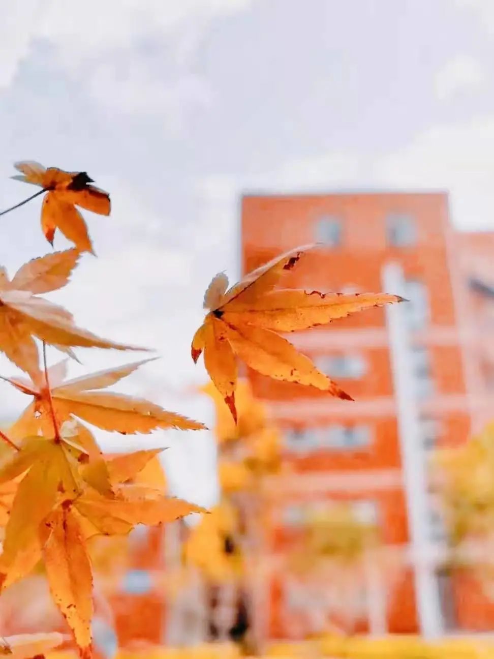 一簇黄叶,为秋日的萧瑟增添了一抹亮色,静静地看着夕阳透过枫叶,温柔地洒在教学楼上。文苑楼前的枫叶墙,慢慢显露出了时光的痕迹,飒爽的秋日,捧一杯奶茶,体验雁啼红叶天,人醉黄花地的意境。
