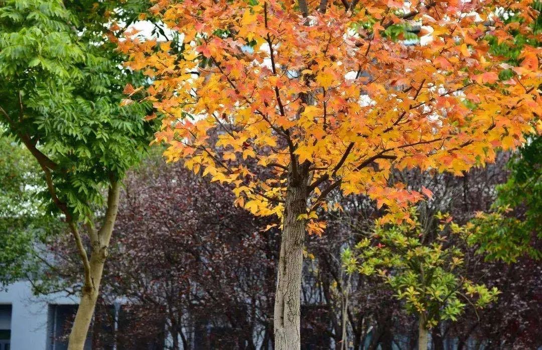 赏枫地点:海琴食堂前、香樟大道旁、商船学院楼周围