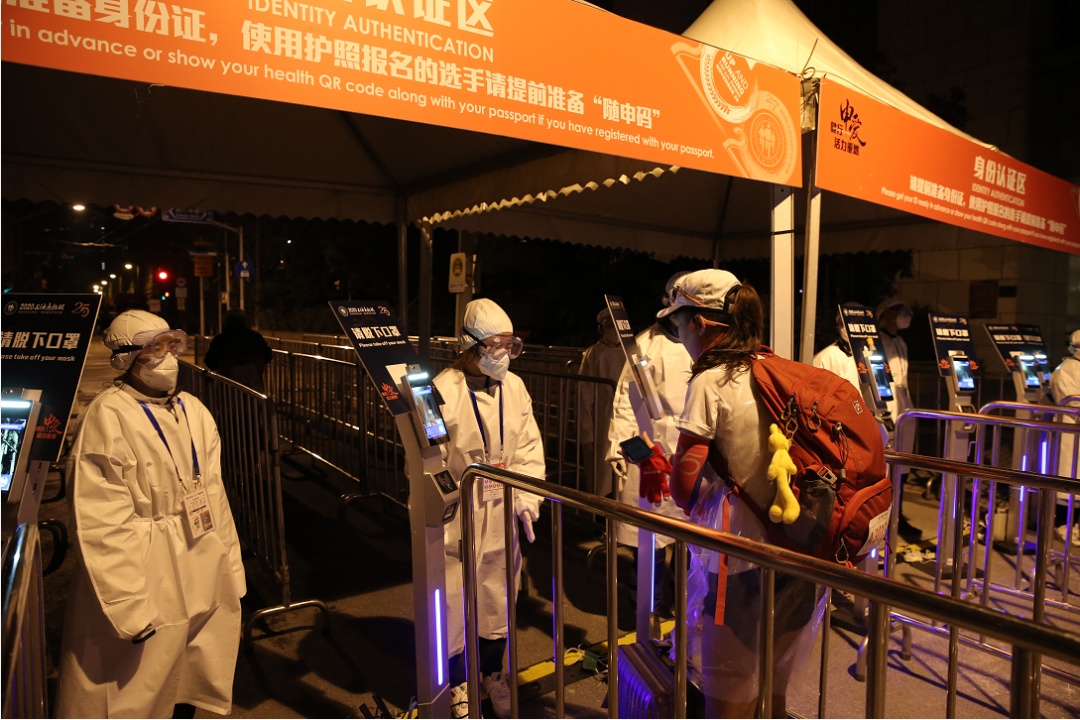 为加强疫情防控,本次“上马”进入起点区域除测量体温外,使用身份证件进行三合一检查。
