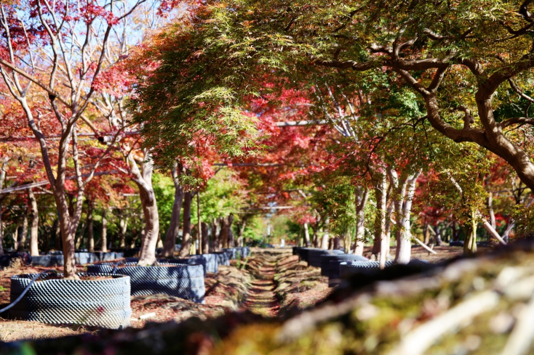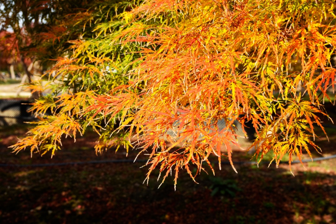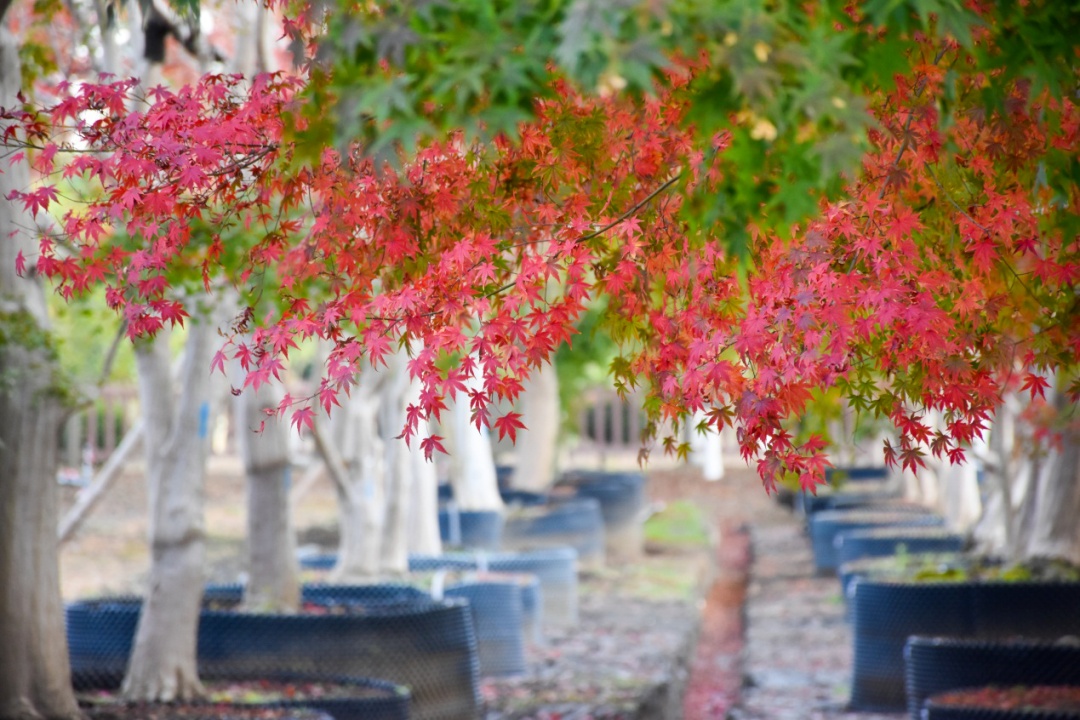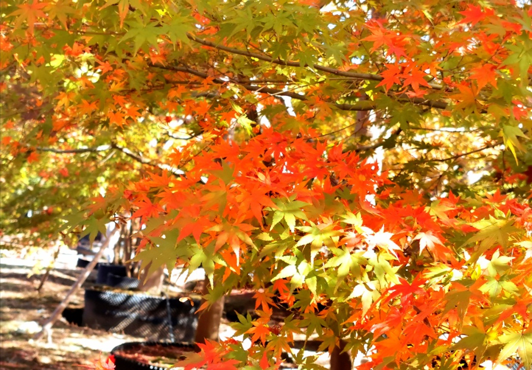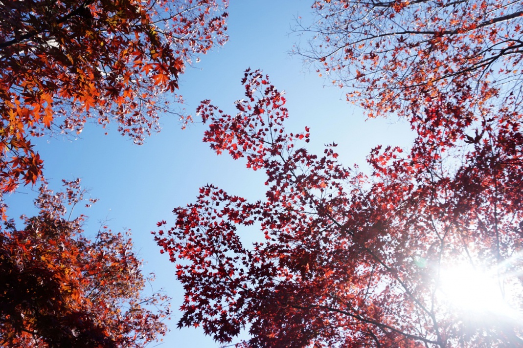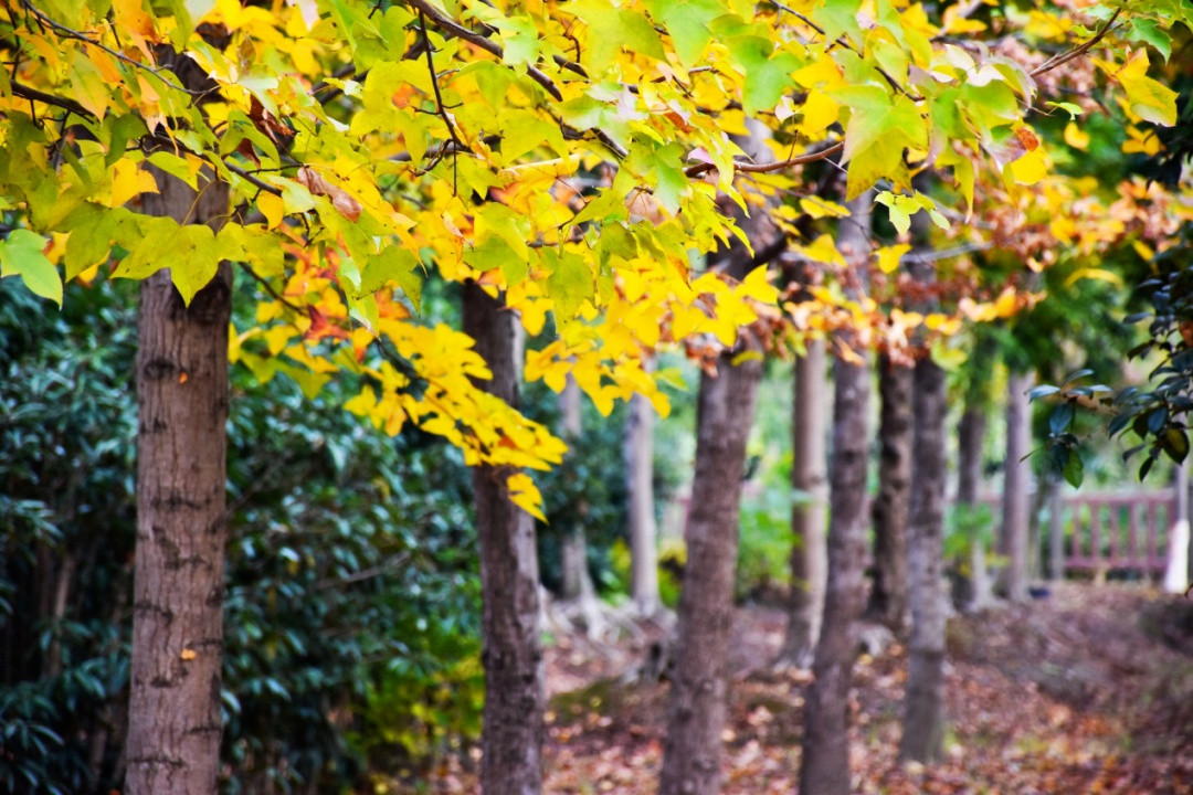 在中步村800亩名贵树林园内,枫树叶或随风摇曳,或飘落而下,为中步村抹上了耀眼的红妆,伴着梧桐的黄、松树的绿,依着明媚的阳光、碧蓝的天空,把中步村装扮得五彩斑斓。