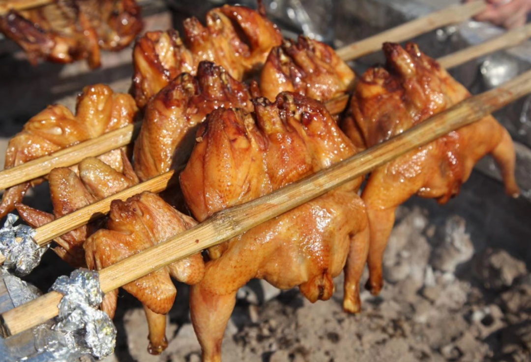 在西双版纳烧烤摊位,大家可以吃到非常有特色的曼飞龙烤鸡。摊主惠思清表示,烤鸡的食材都是来自西双版纳茶山的走地鸡,土法烧烤,每只1斤左右,售价50元。除此之外,这里还能吃到云南本地菜和热带水果,如树番茄等。