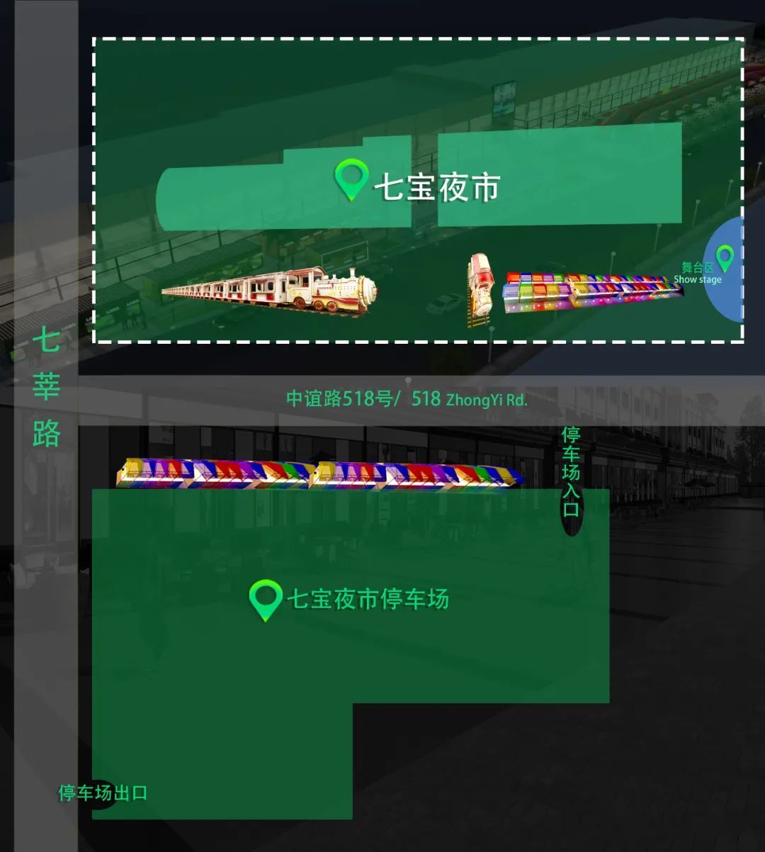 火车夜市对面(D区所在区域)就是七宝夜市停车场,有300多个停车位,1月1日前,只要在七宝夜市消费的市民,都可以免!费!停!车!