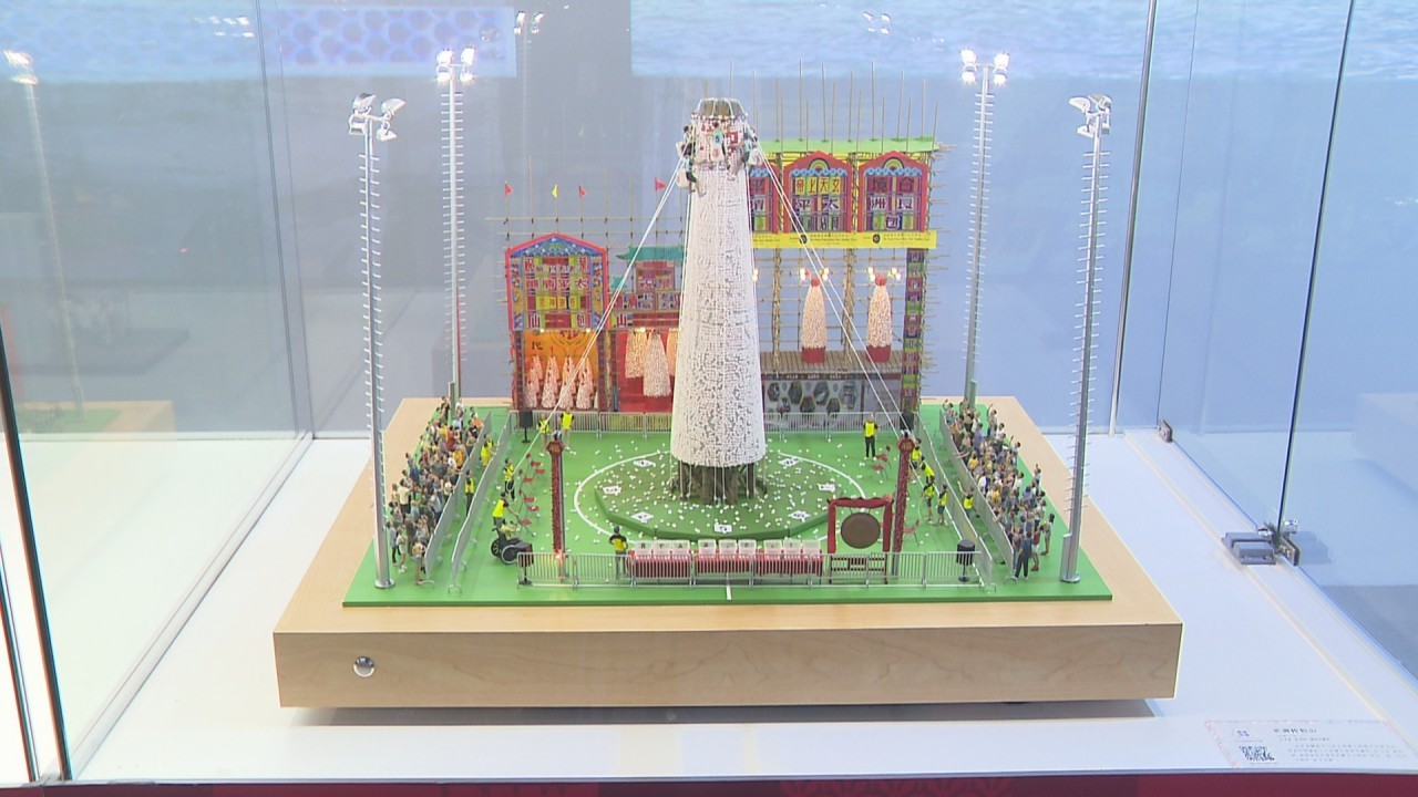 作品《长洲抢包山》,展示了香港长洲最大规模的传统活动。作品中特意加入了因意外导致半瘫的“包山王”黎志伟,展现了他永不放弃的狮子山精神。而一旁的大锣名为“武汉大锣”,是展方在年初特地为武汉疫情防控加油而制作的。