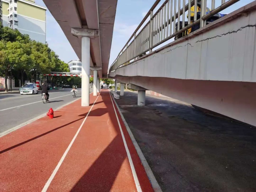 从海烟物流段出来,步道已延伸到祁连山南路桥下,并一路通到临空滑板公园。