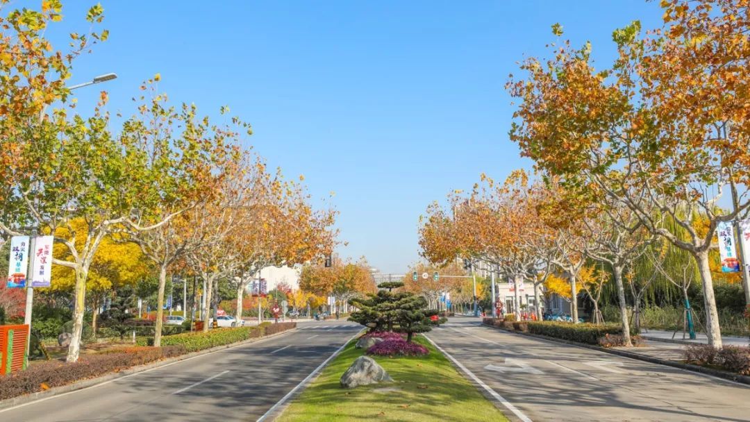园中路沿线种植有双排行道树,机非隔离带内种植有悬铃木,人行道路上种植银杏。每到落叶季,落叶洋洋洒洒,如同写意的画笔,在斑斓的底色上,勾勒出别具韵味的深秋。道路中间隔离带内,运用红花继木桩、紫薇桩、五针松、罗汉松等造型树桩以及四季草花,打造出各具特色的精致园艺小品。