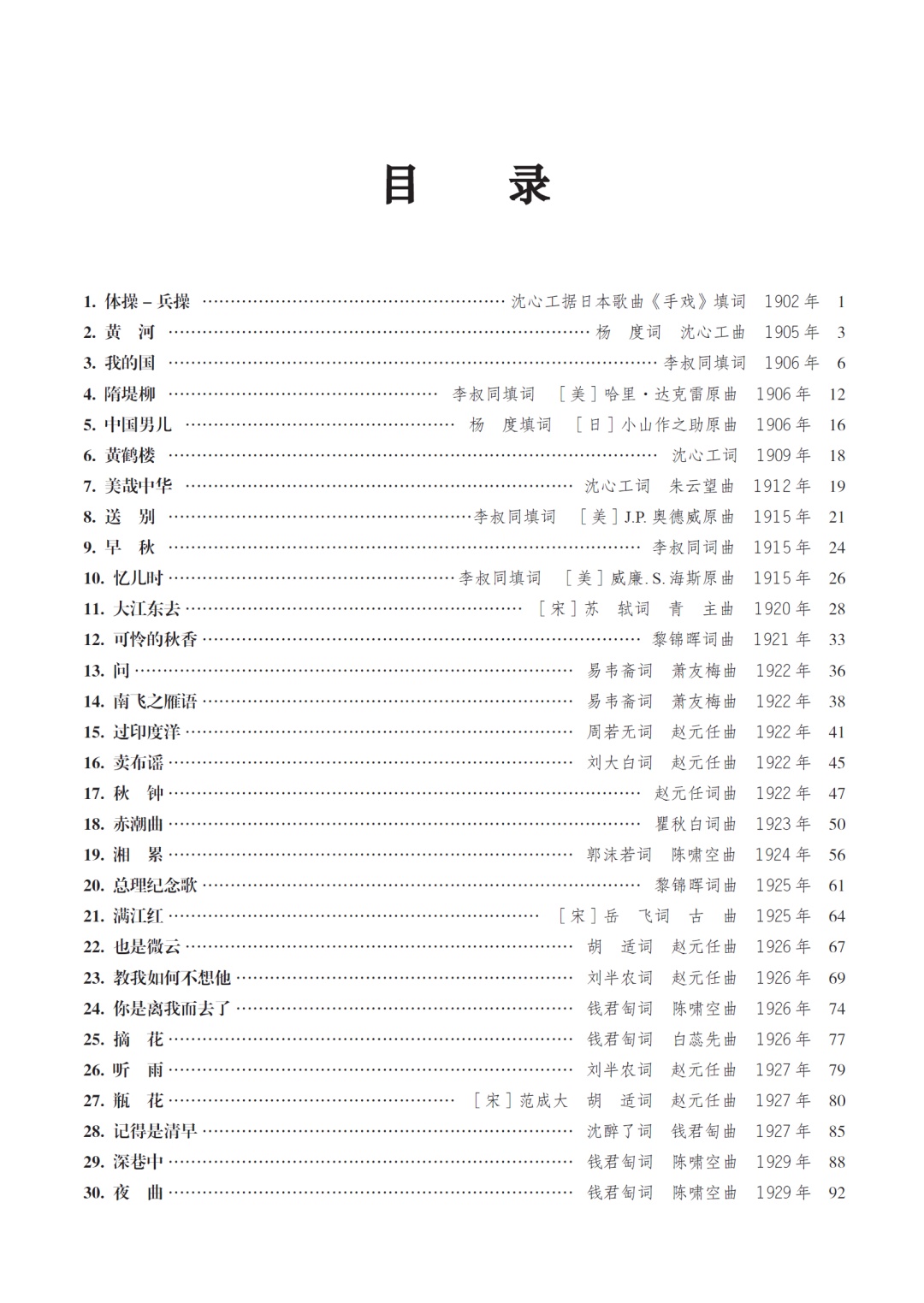 第一卷为“萌芽初兴”(1902—1929),再现了先辈乐人从假借西洋曲调的学堂乐歌创作向独立求索的艺术歌曲创作的重大转变。见证了中国艺术歌曲从无到有的伟大进程。