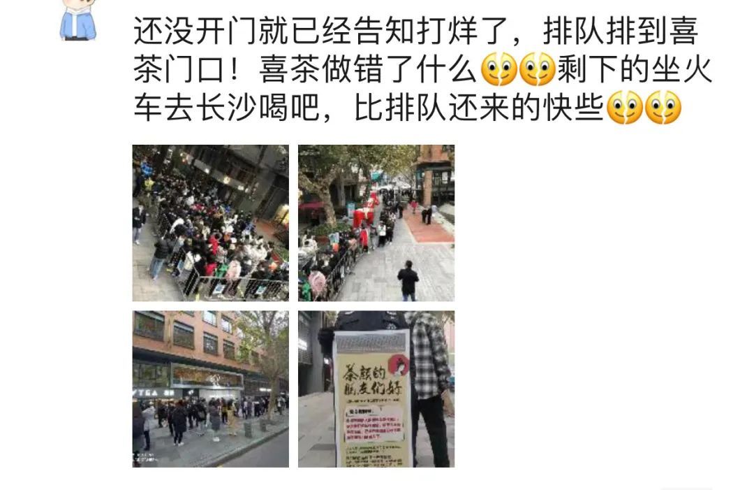 隔壁的喜茶刚开的时候也排队,也是呼呼啦啦一帮人。但现在,“茶颜悦色”的队尾,已经甩到了喜茶门口,像是羞辱一样,真是风水轮流转。