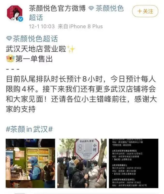 我在武汉天地这边开中餐馆,卖粤菜,也卖些本地菜,应该是最早一批在这里开店的。半年前,“茶颜悦色”就在那里围起了围栏,神神秘秘了半年,里面没有一点动静。到了12月1日,像魔术师帽子里突然蹦出的兔子,一大群人就把这里包围了。