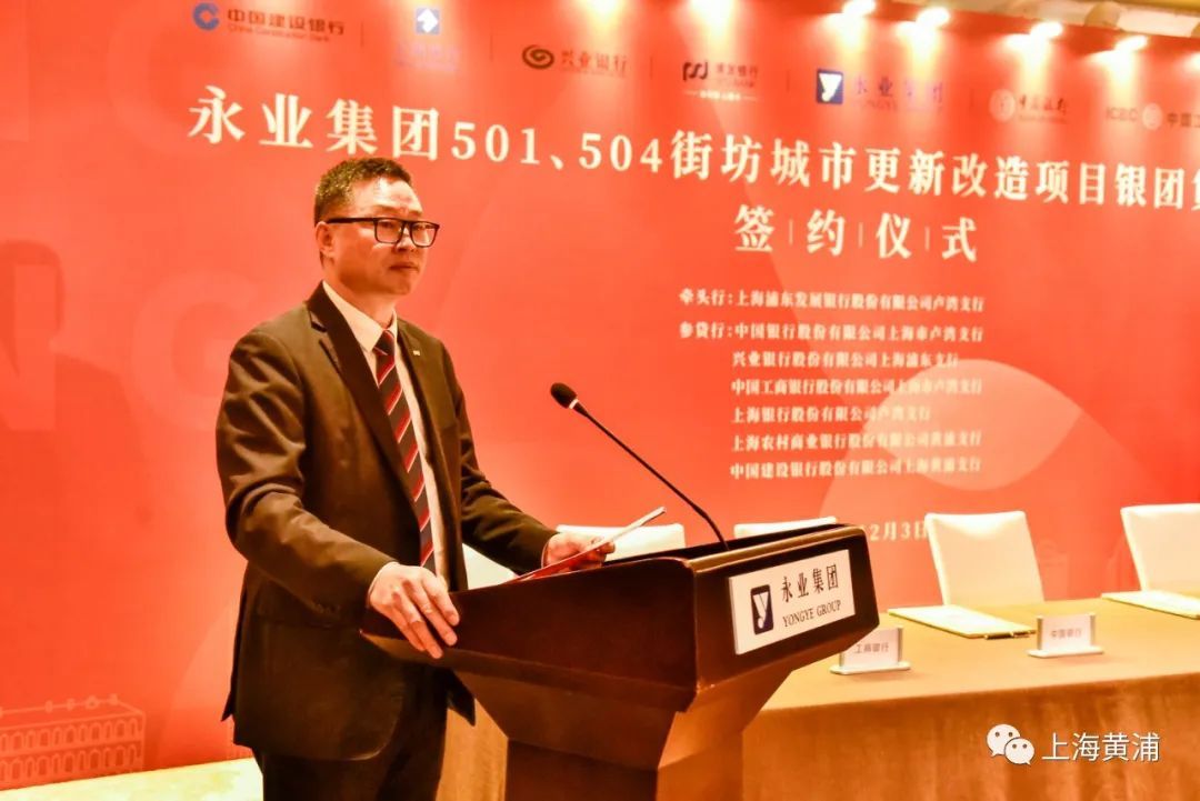 12月3日上午,永业集团501、504街坊城市更新改造项目银团贷款合作签约仪式在思南公馆举行。黄浦区委常委、副区长洪继梁出席并致辞。永业集团和浦发银行、中国银行、兴业银行、工商银行、上海银行、上海农商银行、建设银行等7家银行上海分行及相关支行负责同志出席签约仪式。