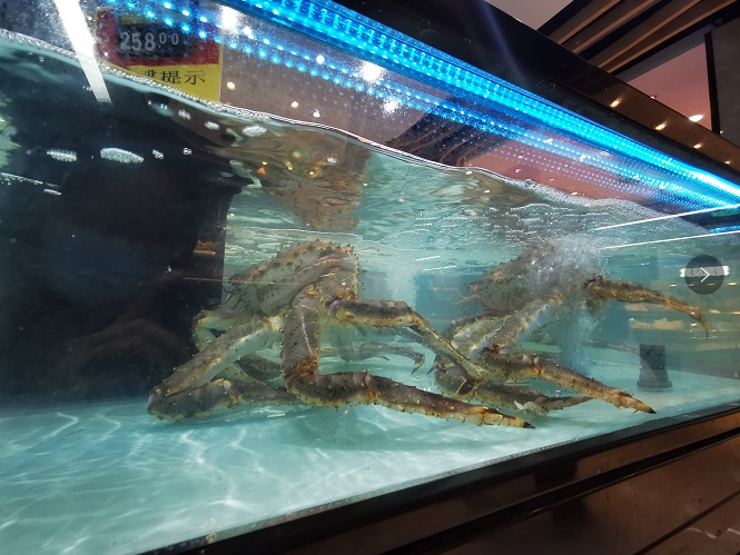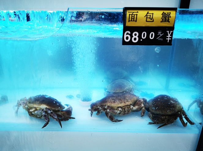 水产品不仅有常见的鱼、虾、螃蟹等河鲜,还有波龙、面包蟹、石斑鱼等海鲜产品。