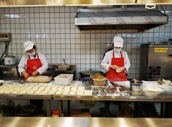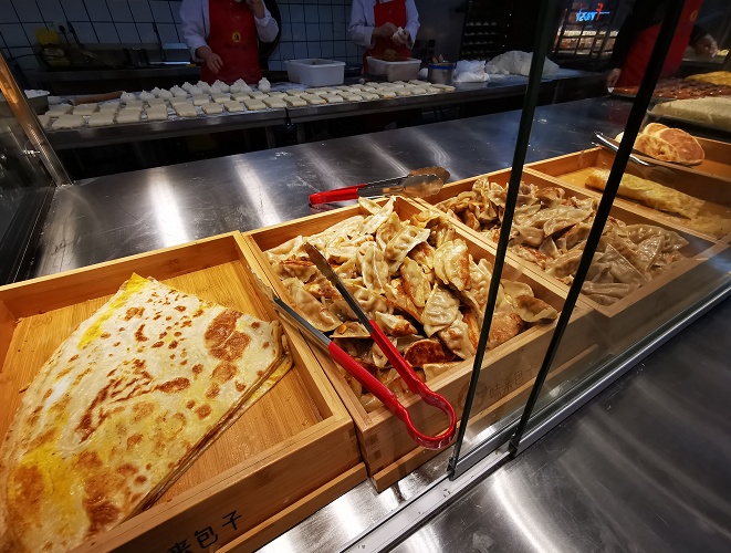 值得一提的是,面点区新鲜面食现场制作,肉饼、馒头、面条、粽子、发糕等都非常受市民欢迎。