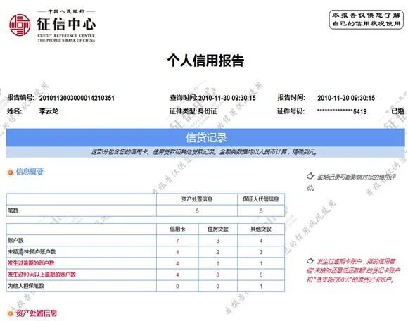 从征信中心提供的个人信用报告样例图片来看,包括自己名下的账户数、未结清未销户的账户数、发生过逾期的账户数、为他人担保的笔数等详细信息。基本上就可以知道自己名下有多少银行卡和贷款了。