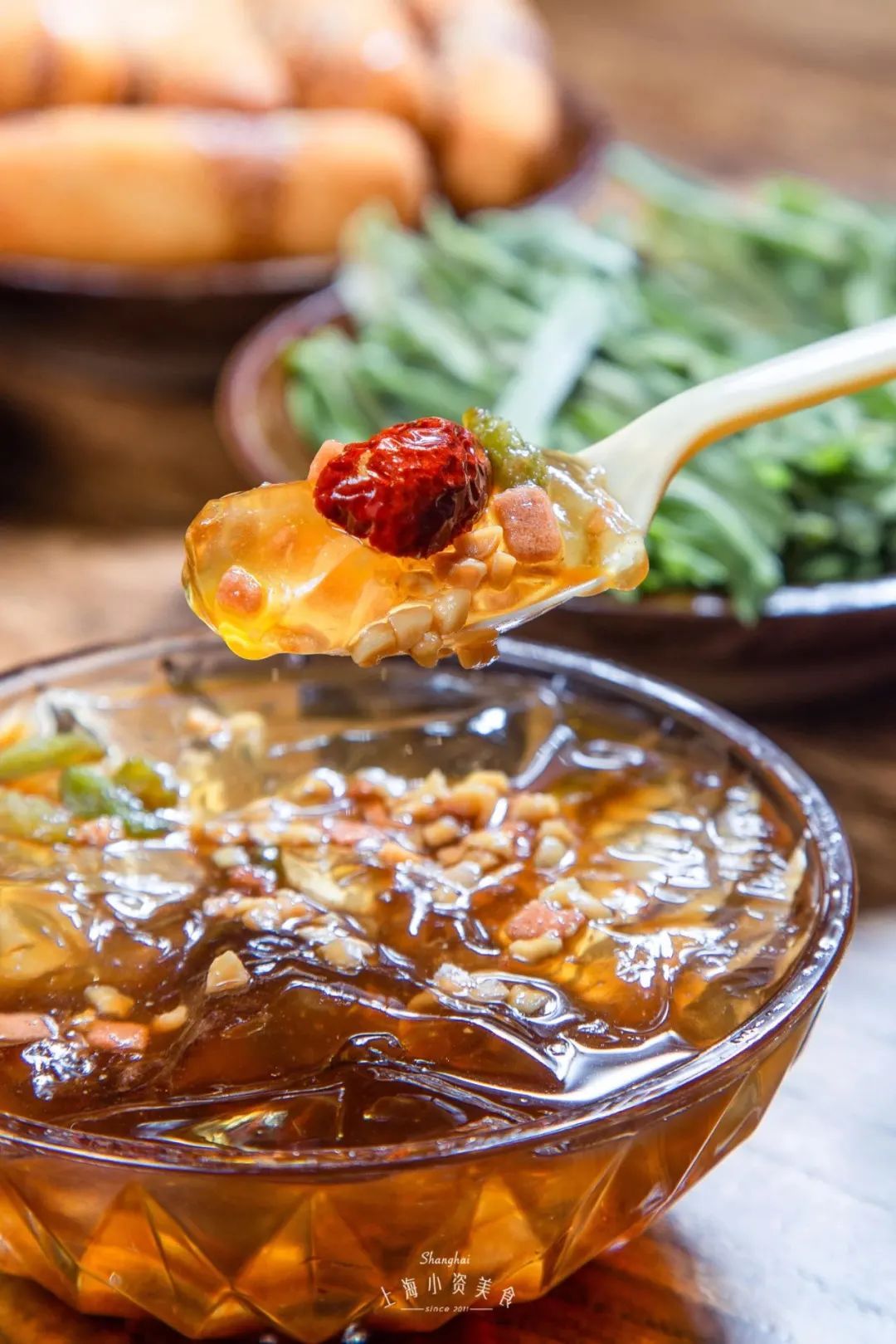 招牌的椰奶冻可以说是每桌必点的网红单品,说它是魔都排行前三的椰奶冻也不为过;奶味特别浓郁不说,吃完还可以刮里面软软的椰肉,一点都不费力!