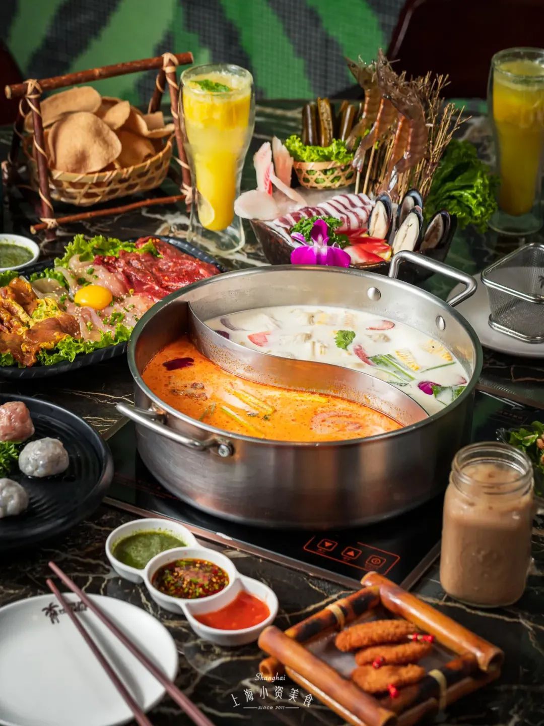 去年11月,创下14个小时排队记录的贤合庄,终于来魔都了,作为陈赫、叶一茜、朱桢一起合作开的火锅店,可谓是名副其实的明星店。