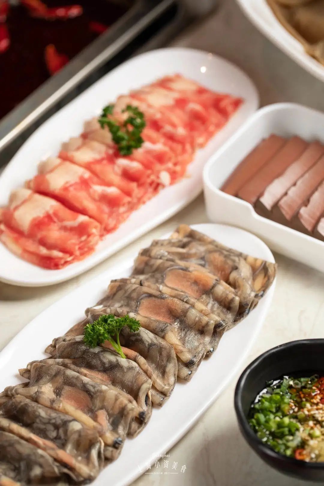 鲜嫩的匙柄几乎每桌必点,只需简单涮上7-8秒即可食用,第一口先试试原汁原味的鲜牛肉,第二口配上经典的沙茶酱,鲜甜又咸香!