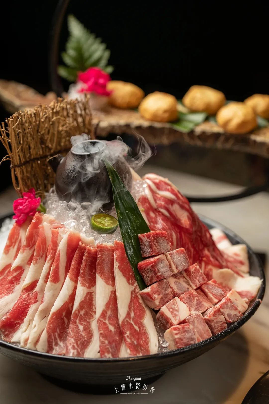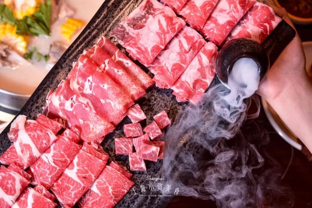 上来就烟雾缭绕,“自带仙气”的有机舞菇和牛肉三重奏,品质看得出的新鲜!肥瘦相间的牛肉粒烫熟后,一口下去满是汁水,肉祖宗吃得超满足!