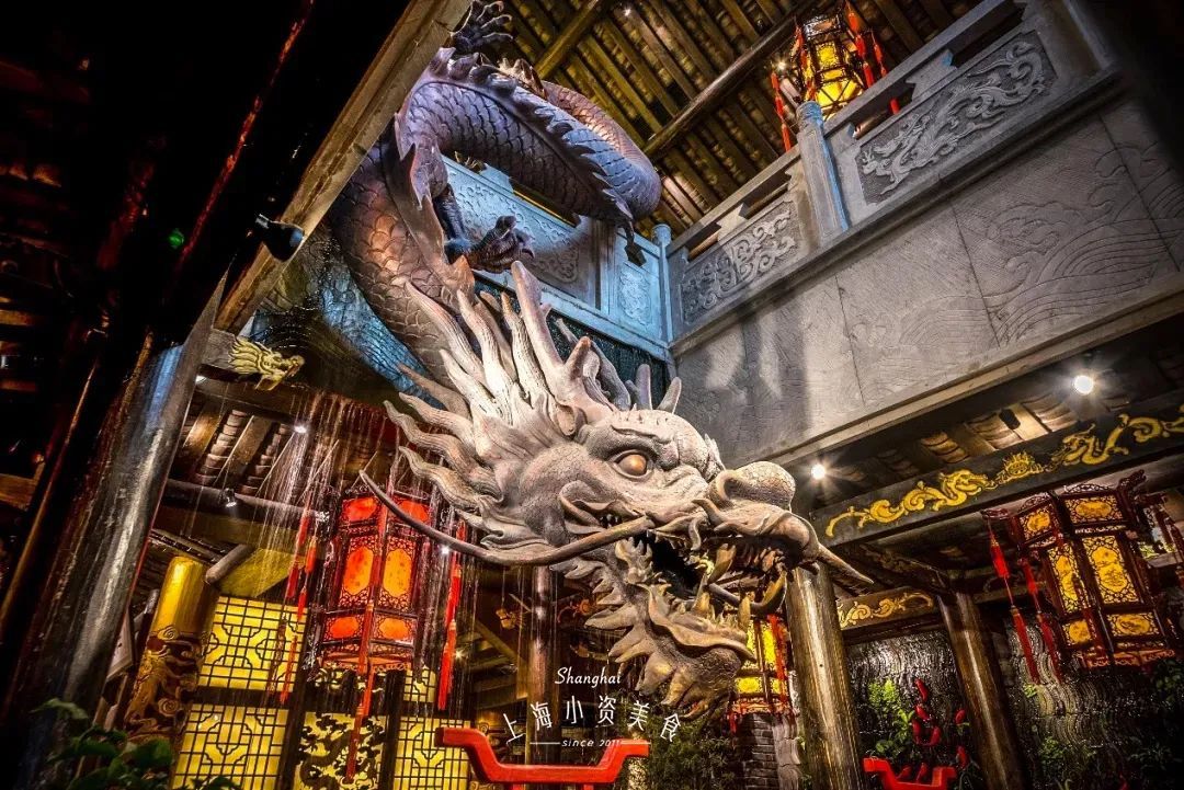 进门处的水流景观、餐厅中央的镇店龙柱、吧台上的琉璃灯,还有沿街落地窗,处处都时尚又文雅,很有网红店的feel!