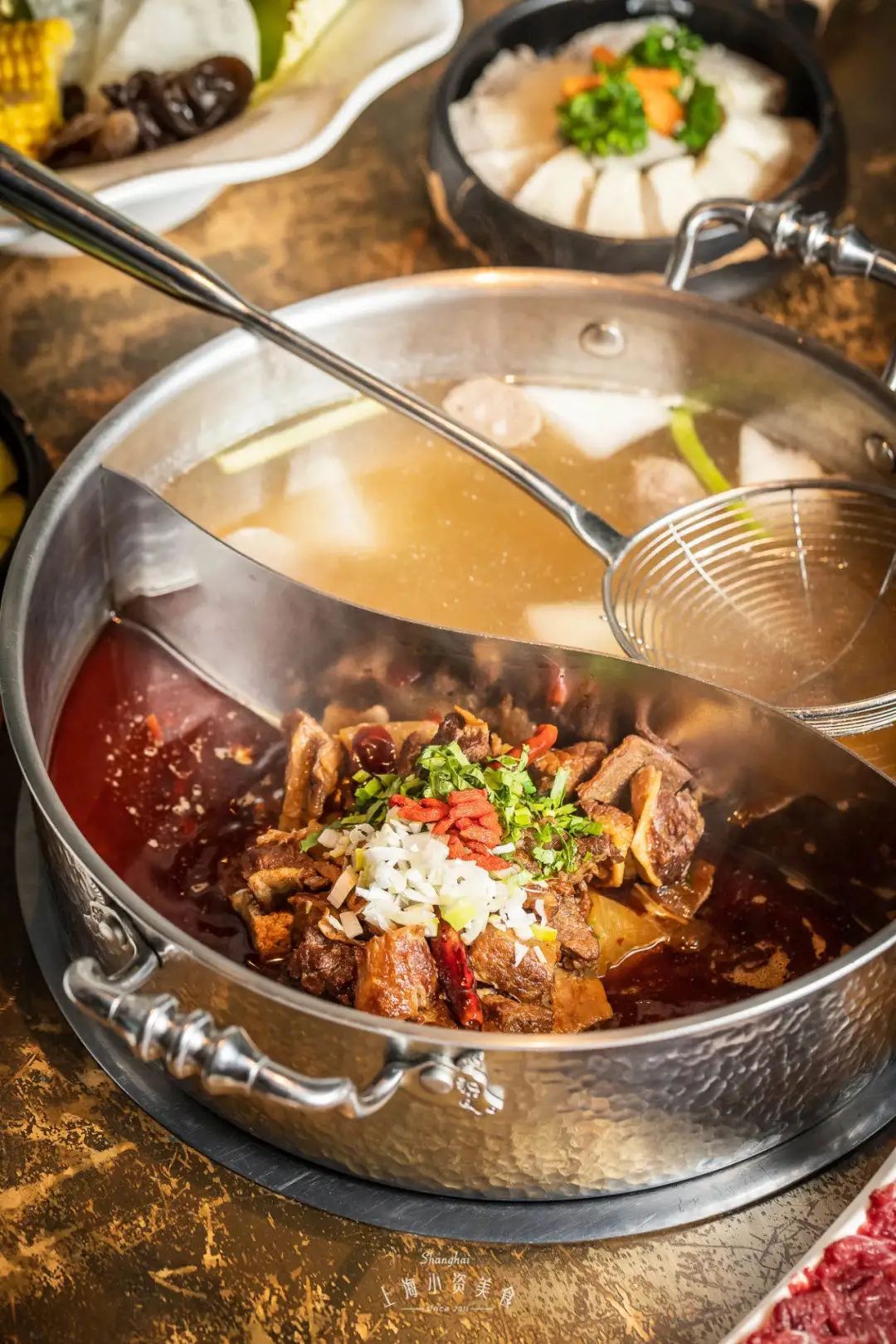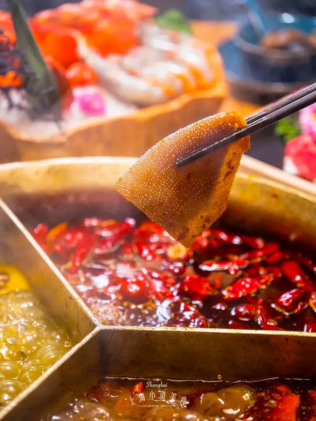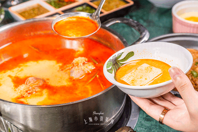 魔都火锅届的排队王之一,自然有对得起排队时间的味道!锅底底料1斤、牛油3斤,完全还原川渝当地的火锅辣度!