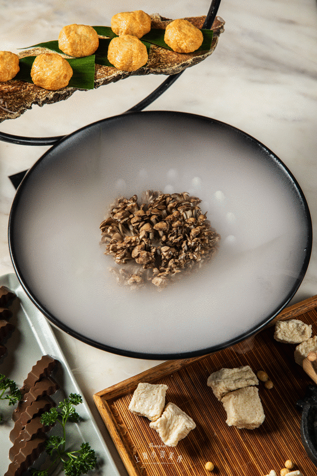 贡丸得安排上,不同于机打贡丸的毫无韧劲,熬八年的香菇贡丸饱满Q弹!