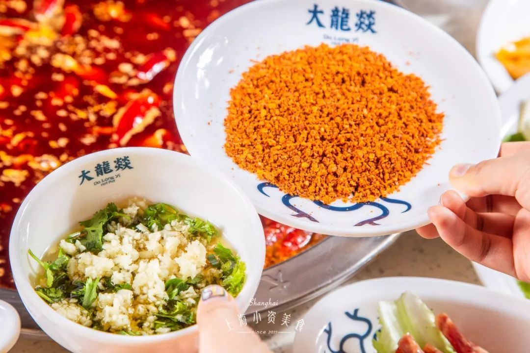 吹爆大龙燚的油碟,他家的特色香油,配上蒜蓉、蚝油、香菜、葱花,一份地道的四川味就能get!另外,蘸干碟也是不能错过的选择,都是火锅的绝佳CP!
