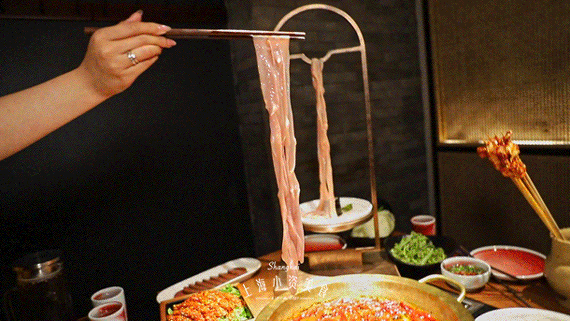 新鲜空运来的鹅肠,烫个10秒就能捞起!卷起的鹅肠上挂满辣汁,入口脆嫩爽滑,一下就能滑到嗓子眼!
