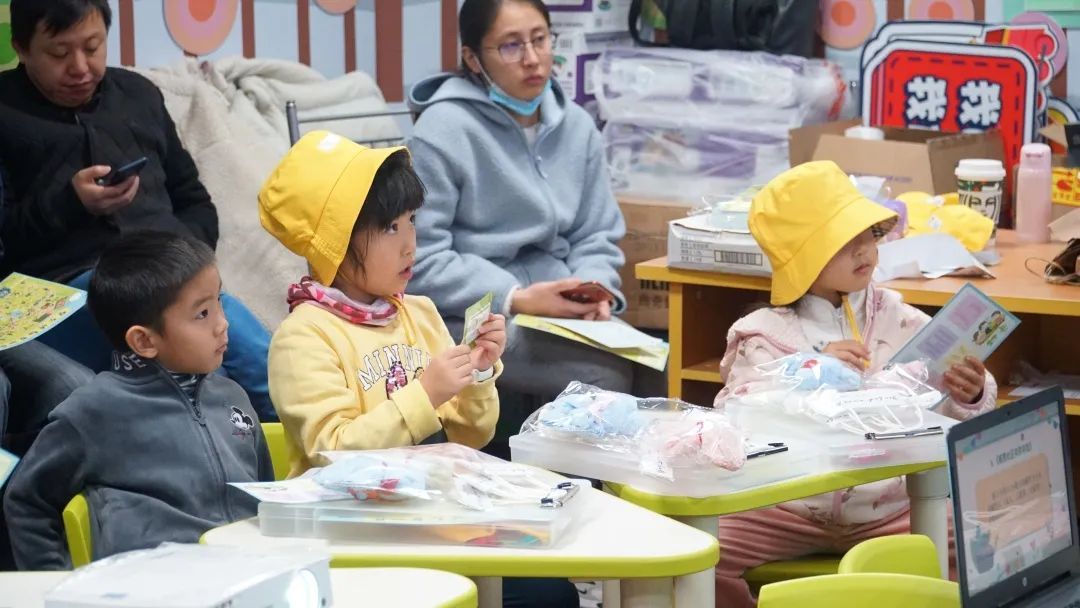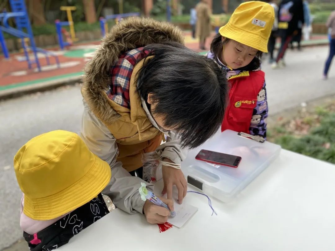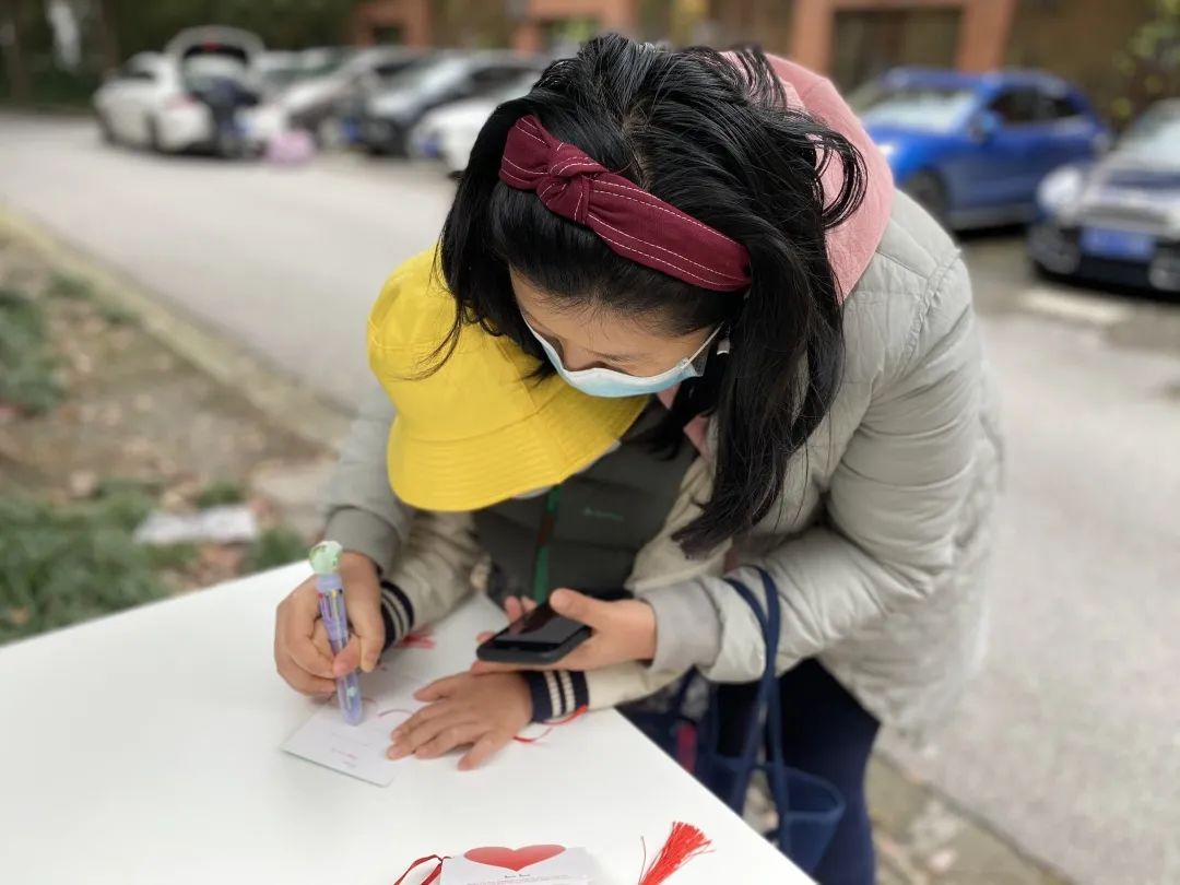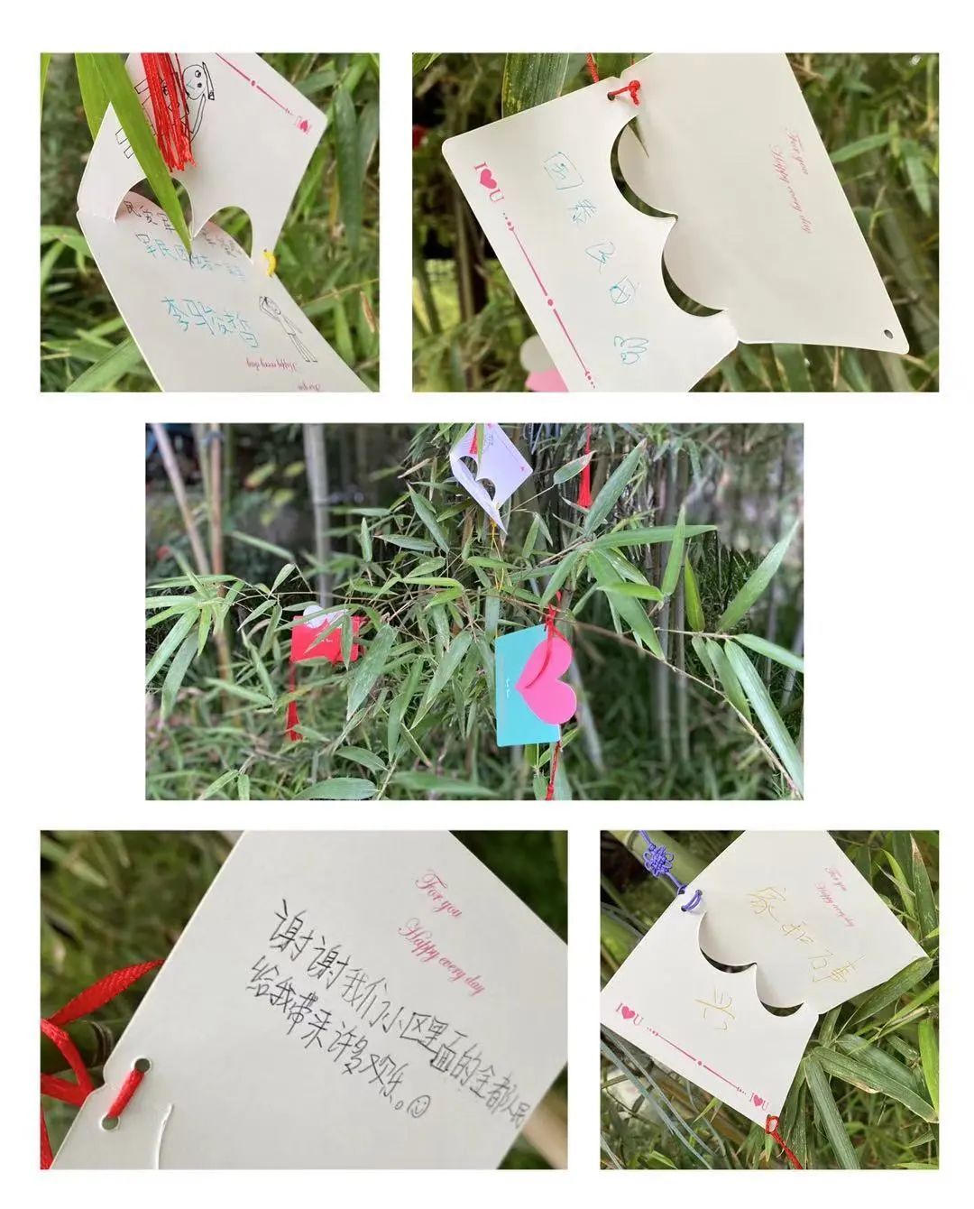 小朋友们与父母一起在心愿卡上写下祝福语并挂上许愿竹,希望社区变得更好。