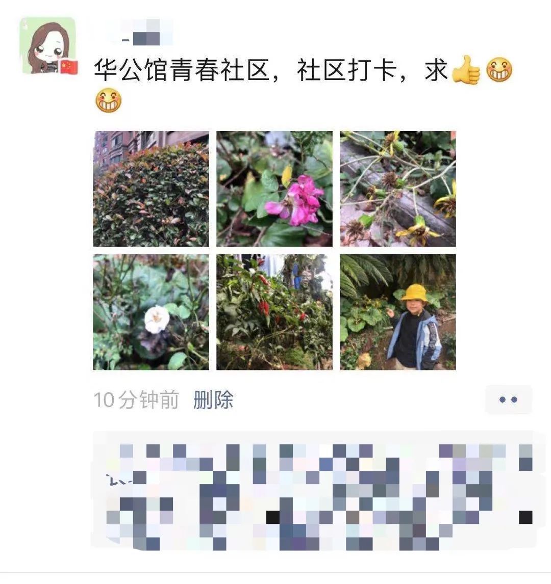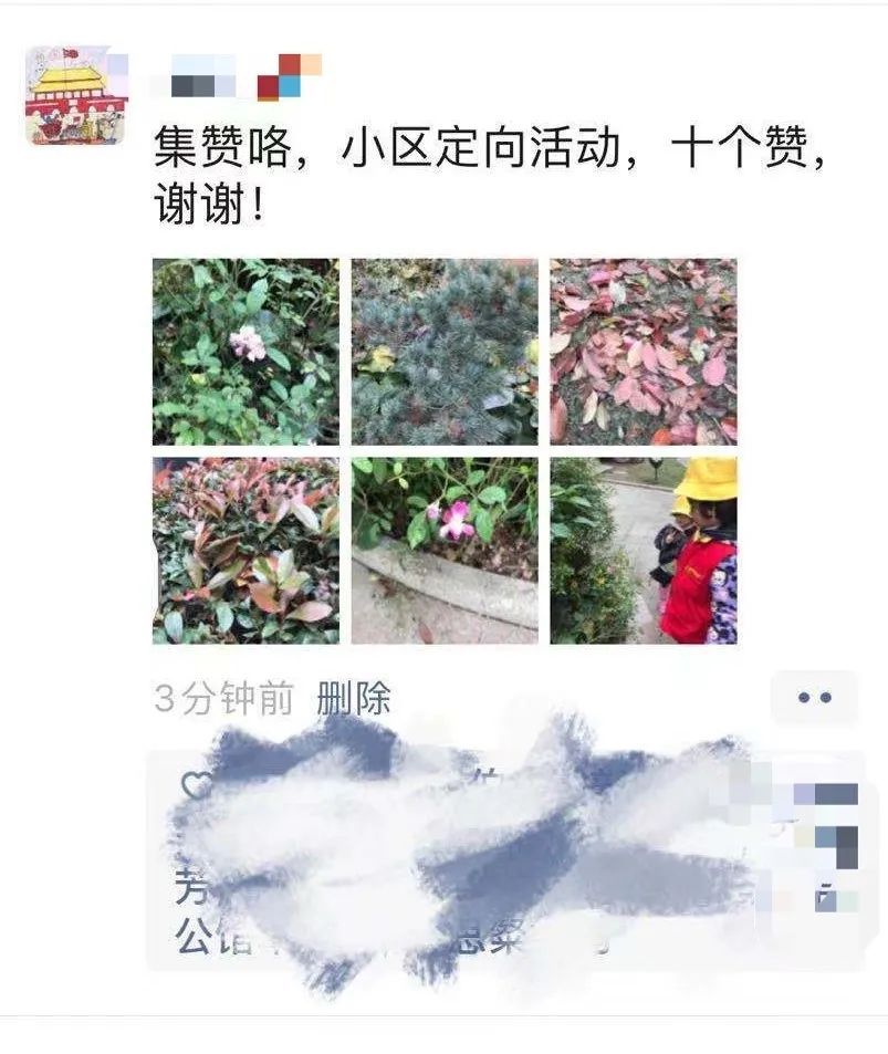 孩子们在社区中寻找五种不同植物,并拍下活动照片发在朋友圈进行展示,增强了亲子互动,使得家长和孩子更加了解社区。