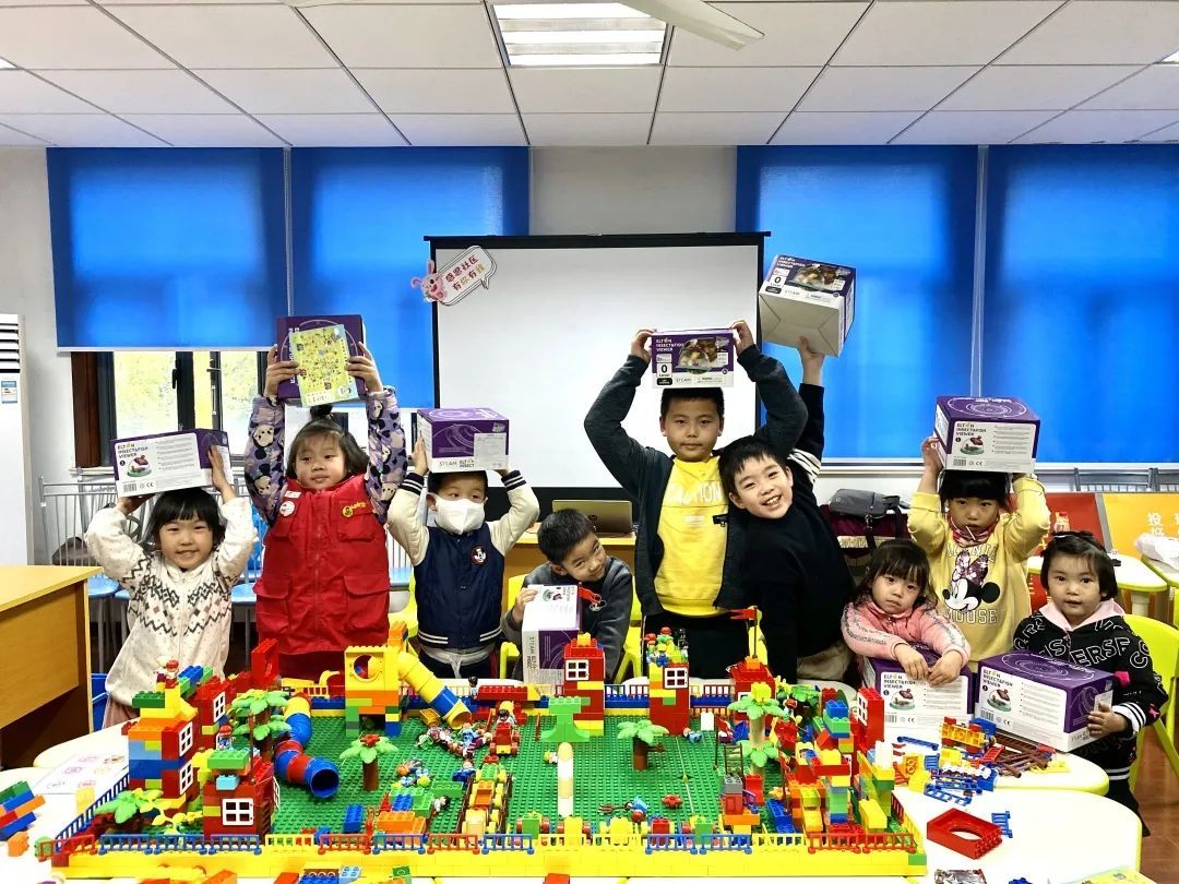 大家集章完成后,回到议事厅发现有更大的惊喜等待着大家——小朋友们在议事厅成员的帮助下一起共同用乐高搭建了自己心中的社区,并向完成打卡任务的小朋友们颁发了奖品。