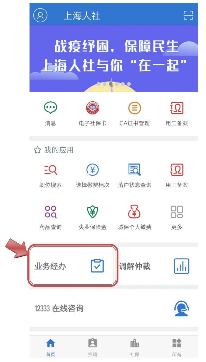登录成功后,请点击【业务经办】模块进行业务办理