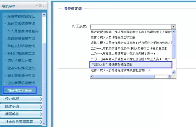 用人单位可持法人一证通,登录“上海市人力资源和社会保障自助经办系统”(CA平台),通过“查询打印服务-增资核定表查询”模块,打印《“四类人员”待遇享受情况名册》,查看本单位相关人员待遇发放情况。