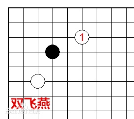 布局中常用的着法之一。当一方先占星位后,另一方分别在两边小飞挂,对其进行夹击。因棋形如同飞燕展翅,故而得名。