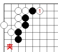 “夹”是对局的一方用两子将另一方的棋子夹在中间的行棋方法。还有一种“夹”,叫“反夹”,是指当一方棋子被另一方夹住时,被夹的一方从对方棋的另一侧再夹对方一手棋。