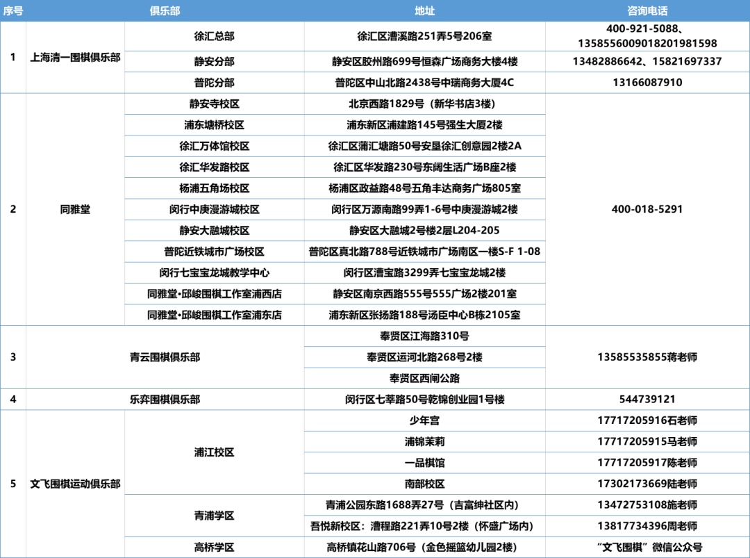 沪上部分围棋俱乐部推荐
