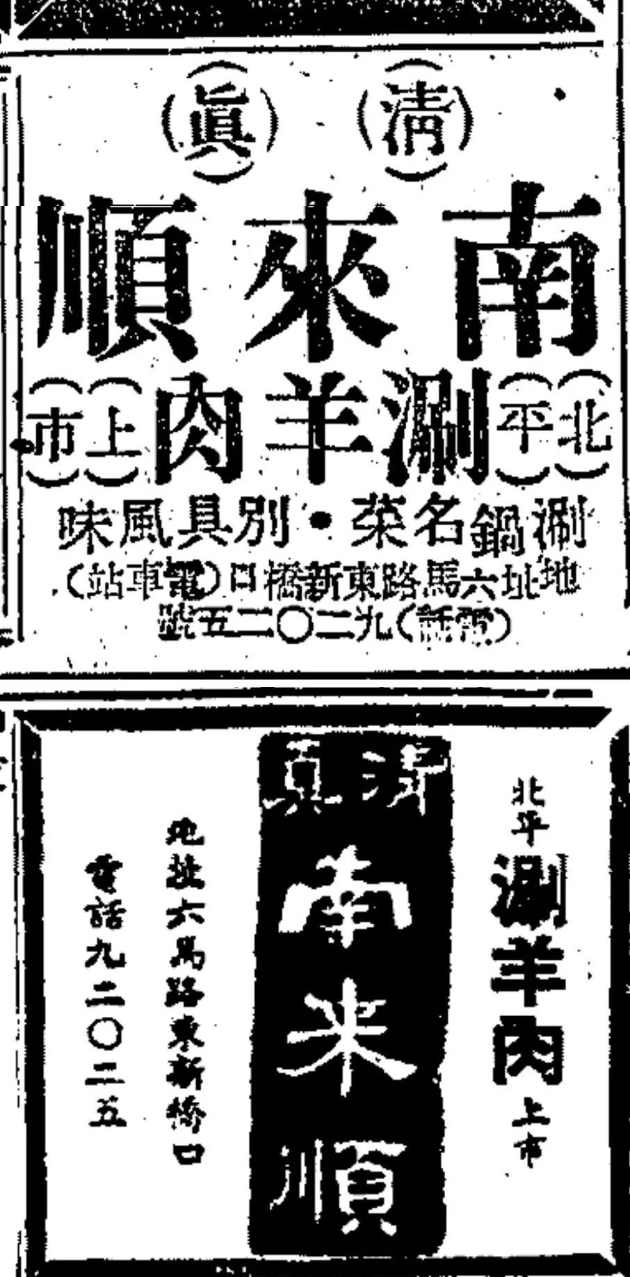 1946年10月26日《申报》刊登的清真南来顺涮羊肉广告