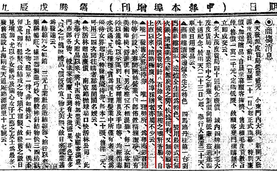 1928年11月4日《申报》“商场消息”中刊登的燕华楼酒家电气火锅上市的新闻