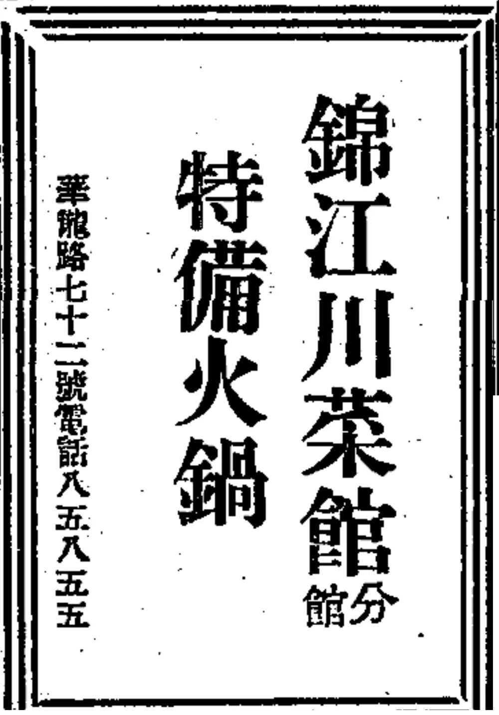 1944年12月21日《申报》刊登的锦江川菜馆龙华路分馆火锅广告