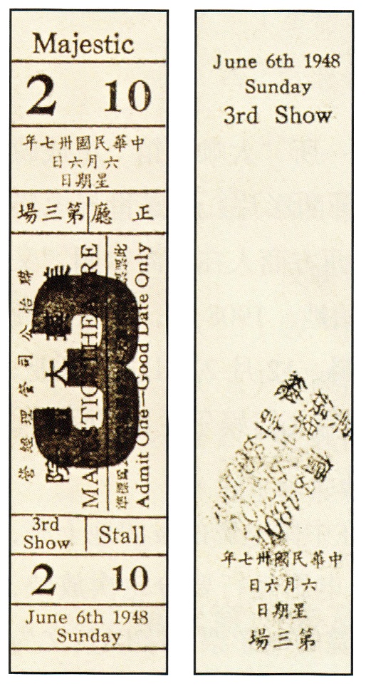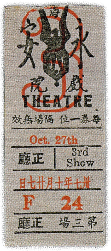 1896年8月11日,西方商人在上海徐园“又一村”放映“西洋影戏”,徐园也就成为电影在中国的起始地。1908年,西班牙商人安·雷玛斯在上海建成了可容纳250人的虹口活动影戏园,12月22日正式开业,这是中国最早放映电影的场所之一。100多年来,电影成为人们娱乐生活的伙伴,作为进入影院的凭证,各种带有时代特色的电影票随之产生。
