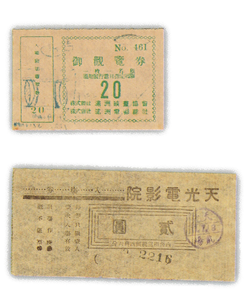 这张御观览券和天光电影入场券反应的是由理事长甘粕正彦在经营“满映王国”的基础上,于1941-1943年先后建立了满洲电影总社、新京音乐团、满洲杂志社等机构。