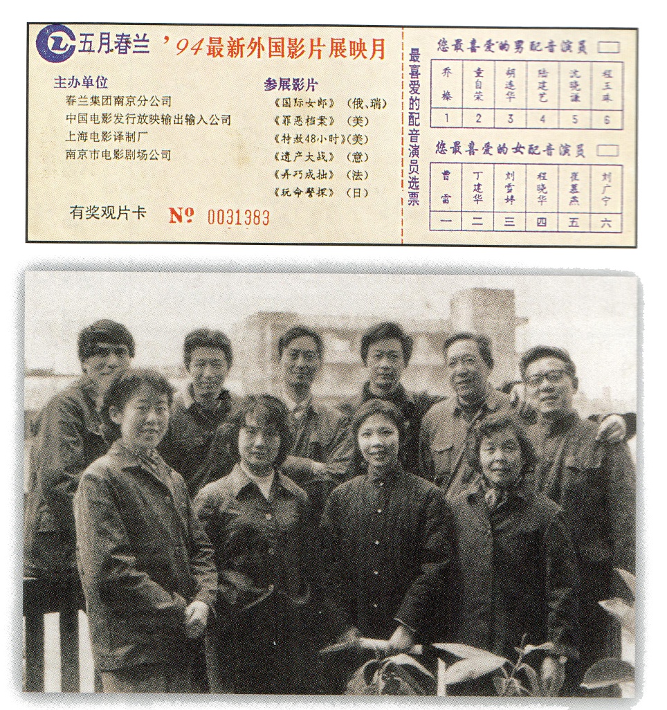 20世纪70年代,中国的译制片天空里群星闪烁,虽然这些配音演员没有说过一句“外国话”,但他们却用标准的普通话描绘了整个西方世界,讲述了许多悲欢离合的故事。他们成为当时当之无愧的明星人物,这是一枚有奖观片卡,上面印有春兰集团和上海电影译制厂主办的“五月春兰'94最新外国影片展映月”活动,评选观众最喜爱的男女配音演员。