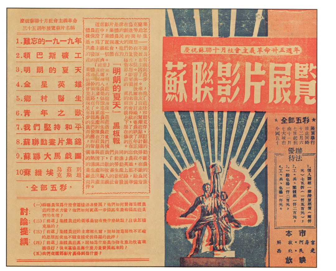 新中国诞生初期,“向苏联老大哥学习”的口号深入到各行各业,中国老百姓了解苏联是从看电影开始的。我国从中央到地方的文化部门和中苏友好协会几乎每年都要举行苏联影片展映活动。