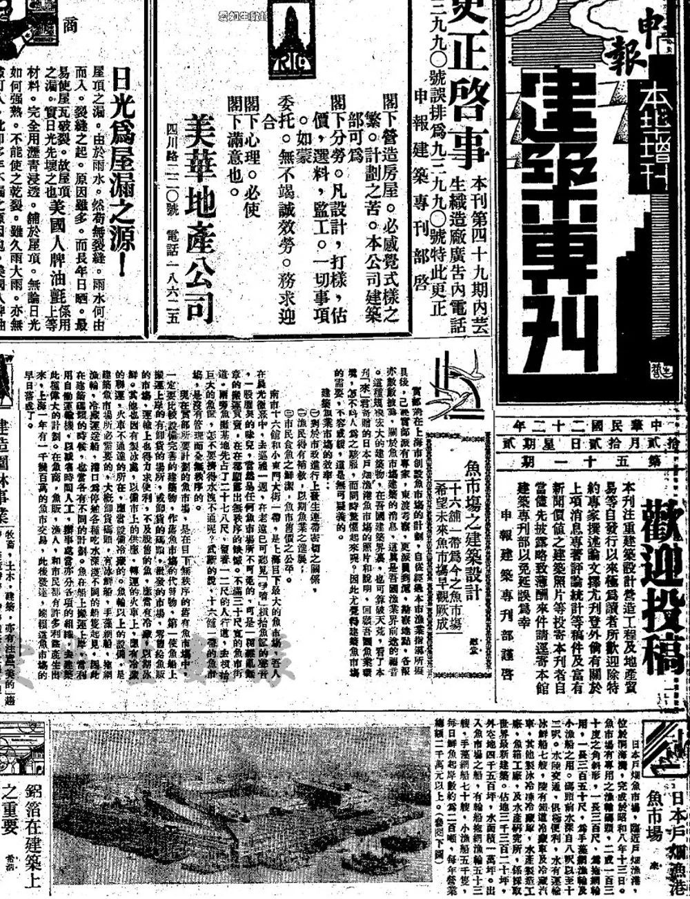 1933年12月12日《申报》建筑专刊发表“鱼市场之建筑设计”一文