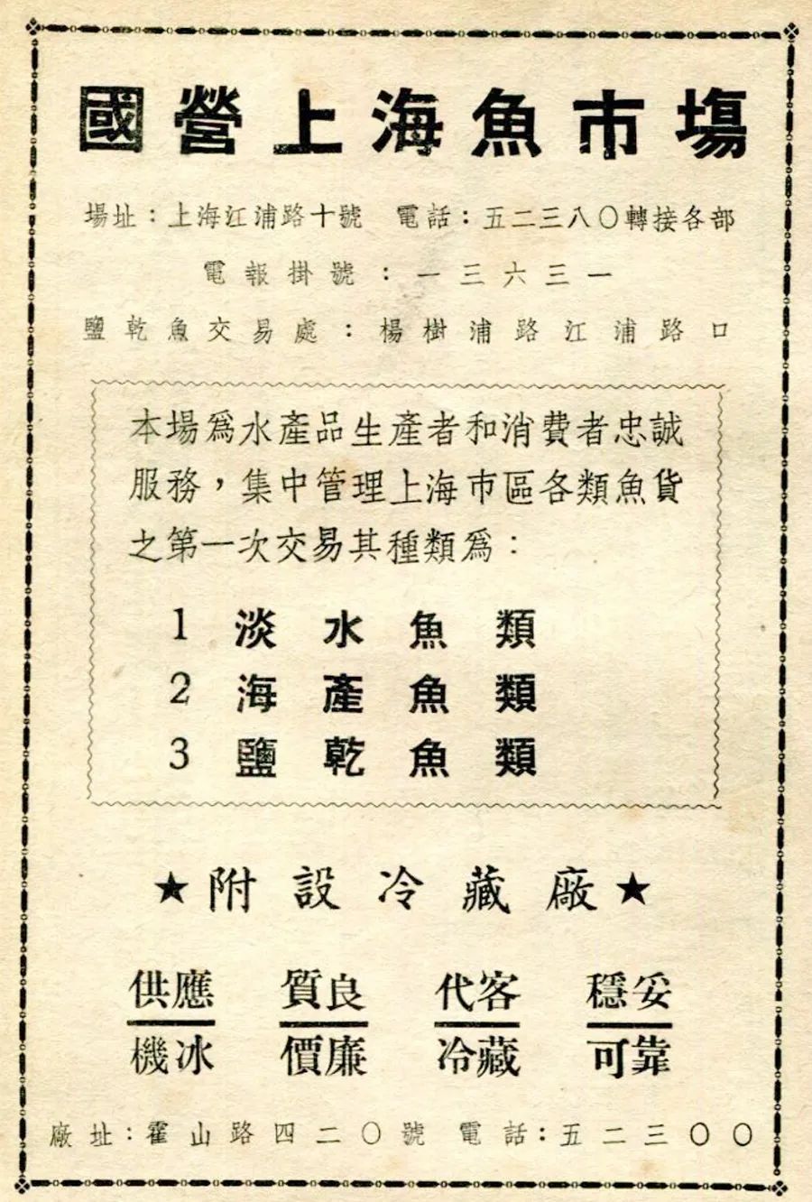 20世纪50年代,江浦路10号,国营上海鱼市场广告