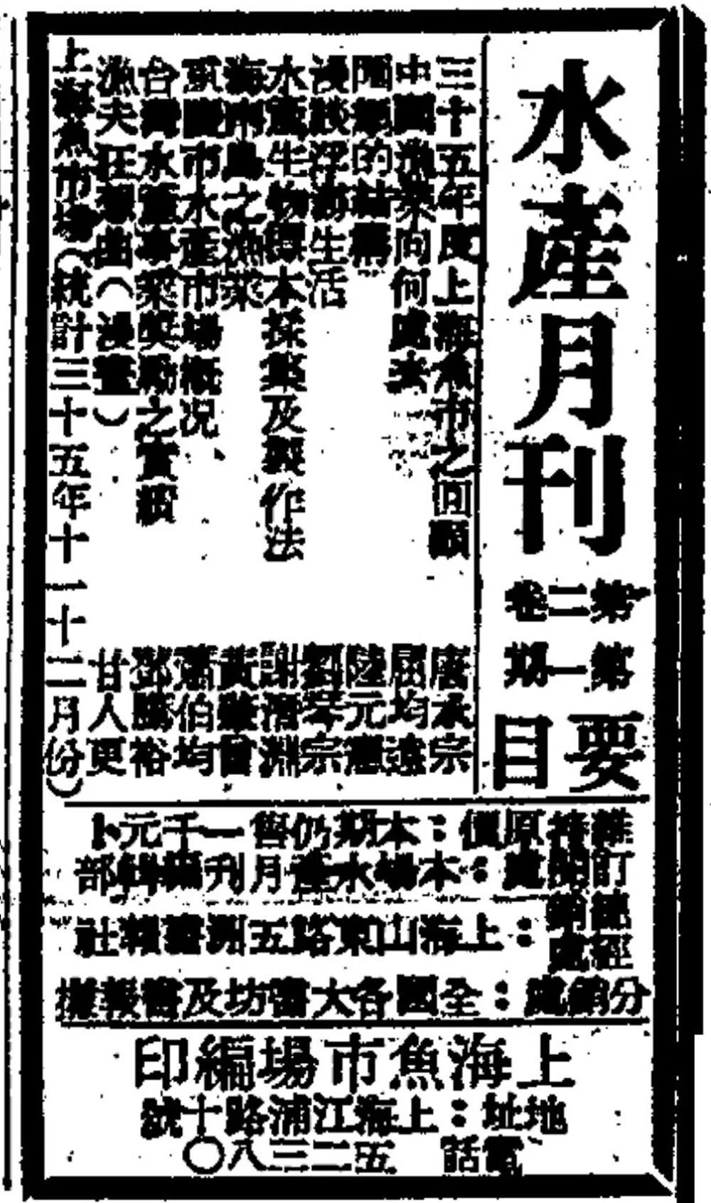 1948年3月,江浦路上海鱼市场编印的《水产月刊》第三卷第二期