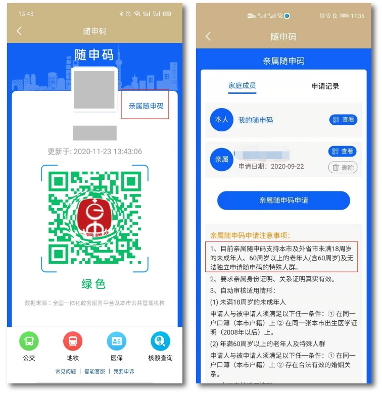 亲属随申码申请要注意些什么?