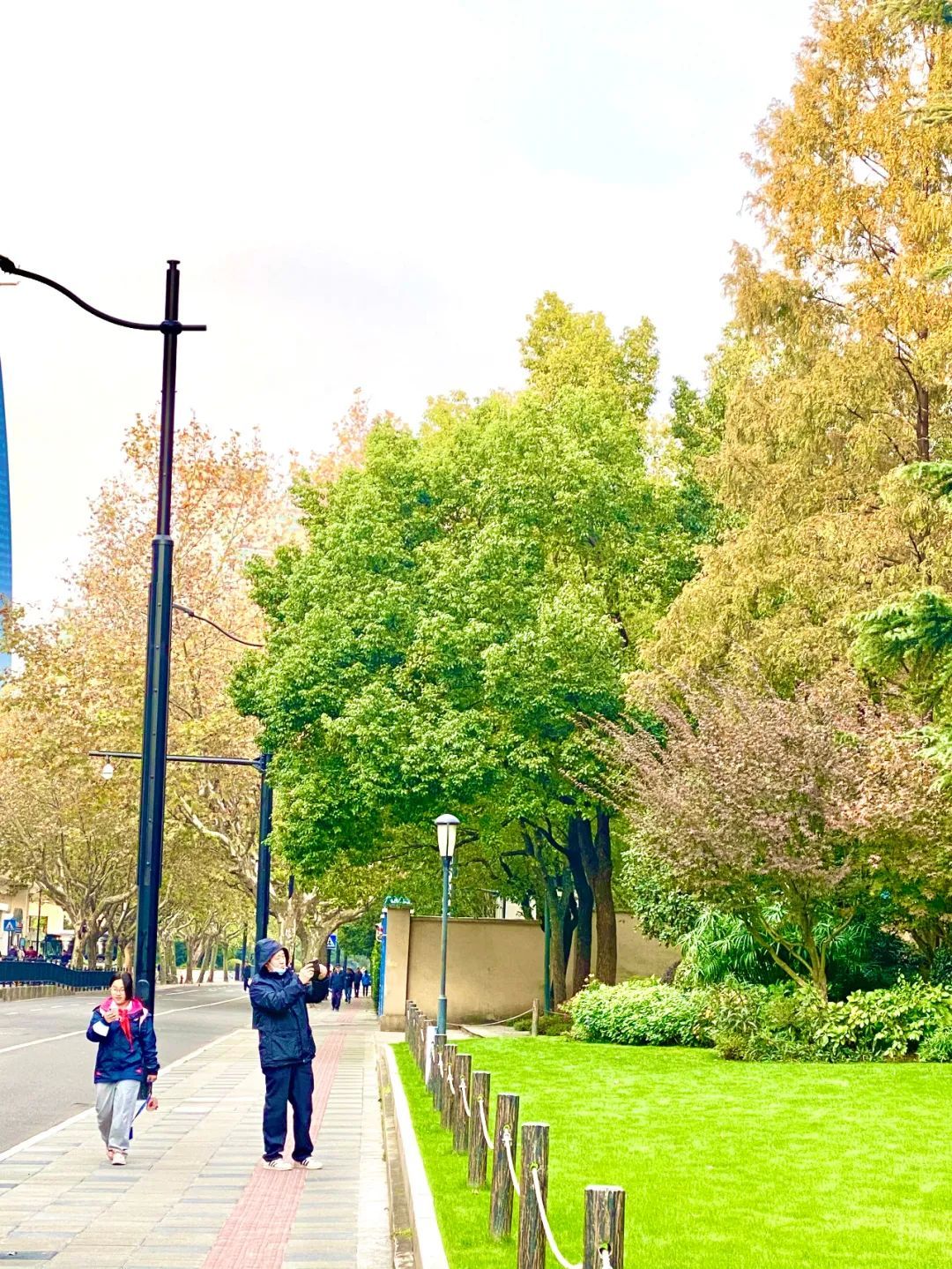 一旦走入海粟绿地中央,又是别有洞天了。沿着小道徜徉,高大茂密的树木接踵而至,遮蔽了半边天空,只有阳光透进来。倘若是夏天,一定是相当凉爽。此刻也俨然让人忘却自己正身处大都市的钢筋水泥中。
