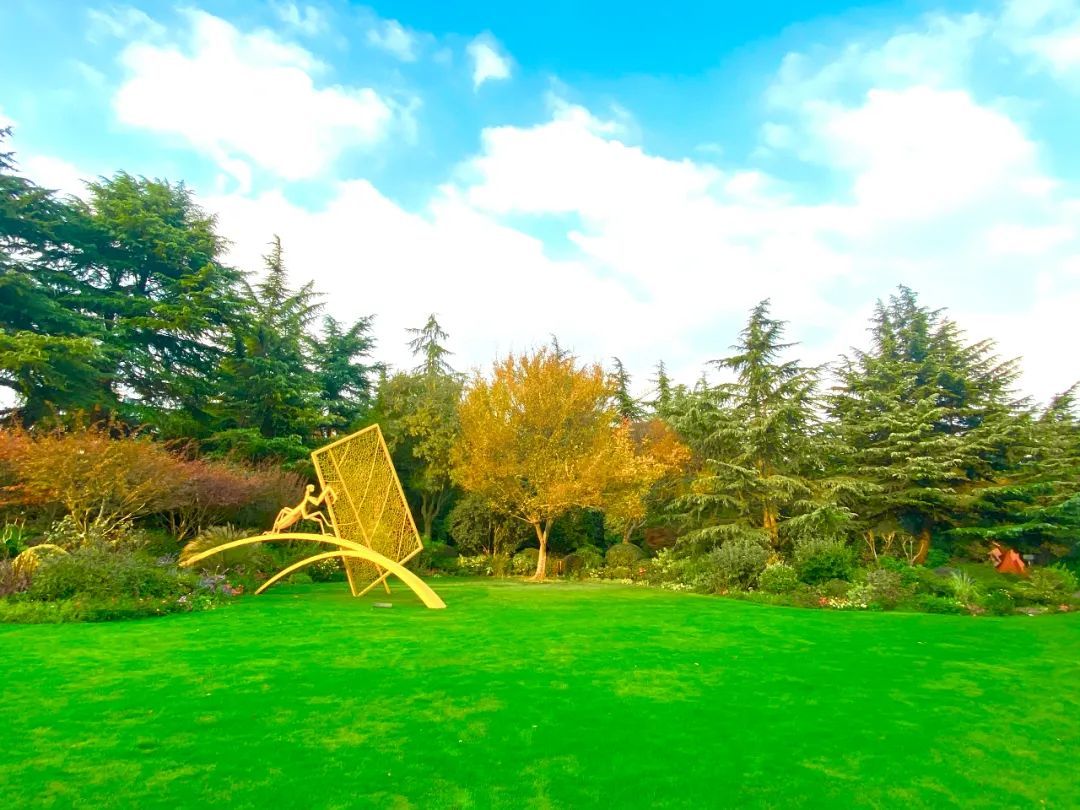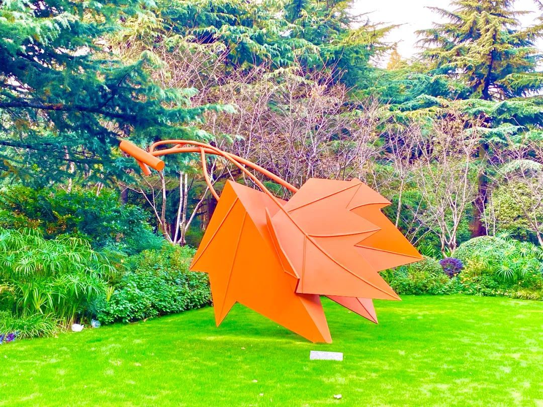 这里有自然美景,而人文气息更为浓郁。伫立在绿地里的两个巨大雕塑,就是点睛之笔。一个是红叶雕塑,大约是因为早就预见了绿地入秋的美丽吧,真是万绿丛中一点红啊。